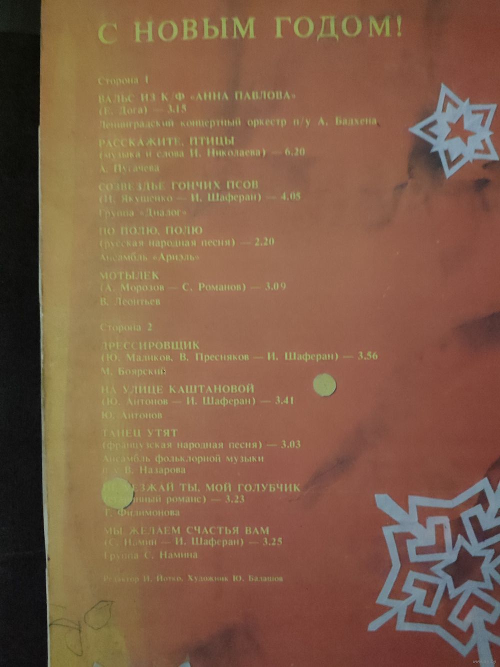 Песни: "Расскажите птицы" А.Пугачевой, "Созвездие гончих псов" группа Диалог, "Дрессировщик" М.Боярский, "Танец утят" , Мы делаем счастья вам" группа С.Намина