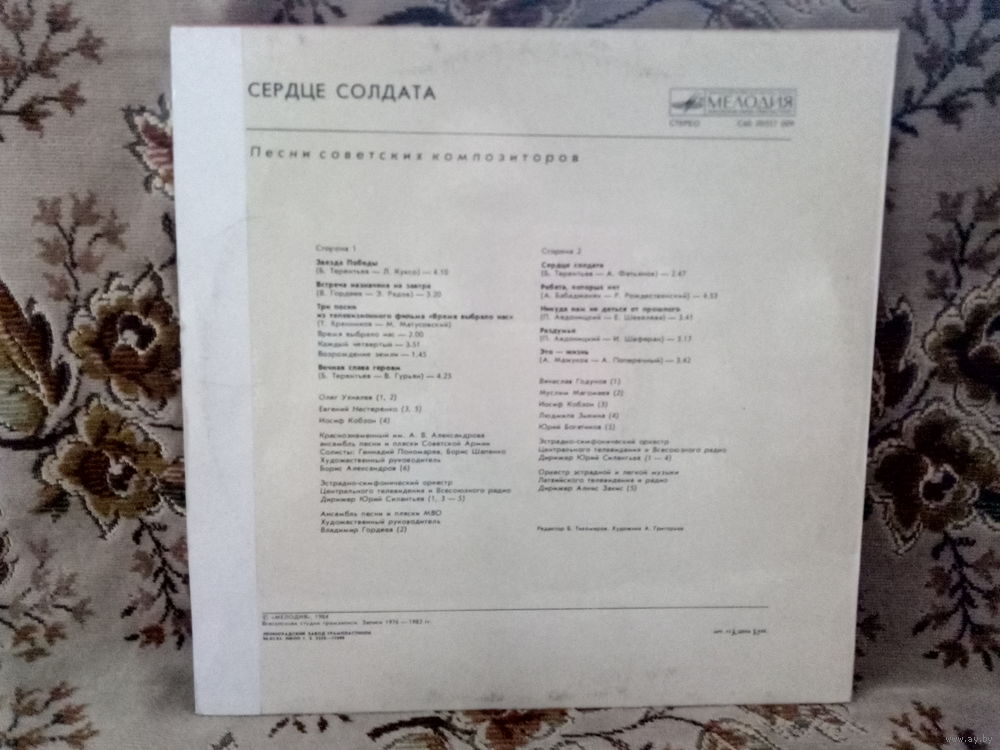 Виниловая пластинка СЕРДЦЕ СОЛДАТА. Песни советских композиторов.