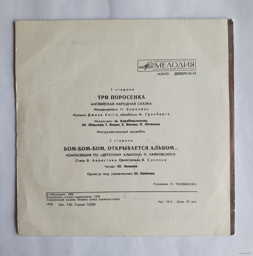 Виниловая пластинка Три поросёнка и Бом-бом-бом открывается альбом... Инсценировка.
