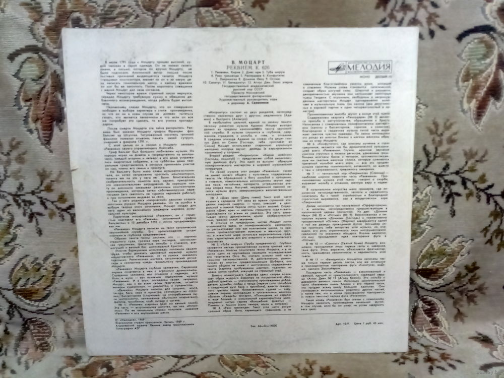 Виниловая пластинка В. МОЦАРТ. Реквием.