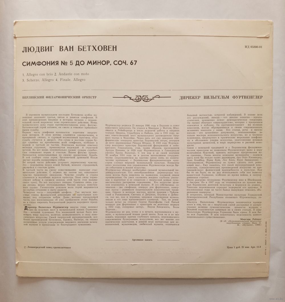 Виниловая пластинка Выдающиеся дирижёры - Вильгельм Фуртвенглер