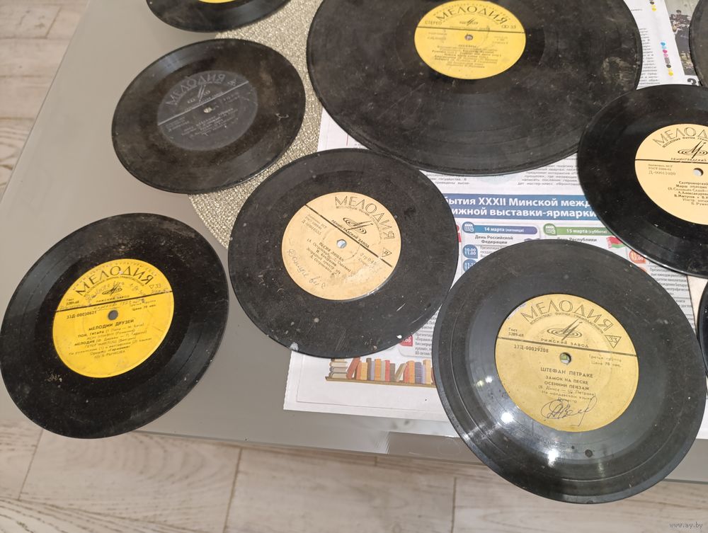 Виниловые пластинки. Хранились на чердаке. В пыли. Не чистил, чтобы не испортить. Переложил бумагой друг от друга. На некоторых имеются царапины. Возможна отправка любой удобной для Вас почтой, почтовые расходы за счёт покупателя.