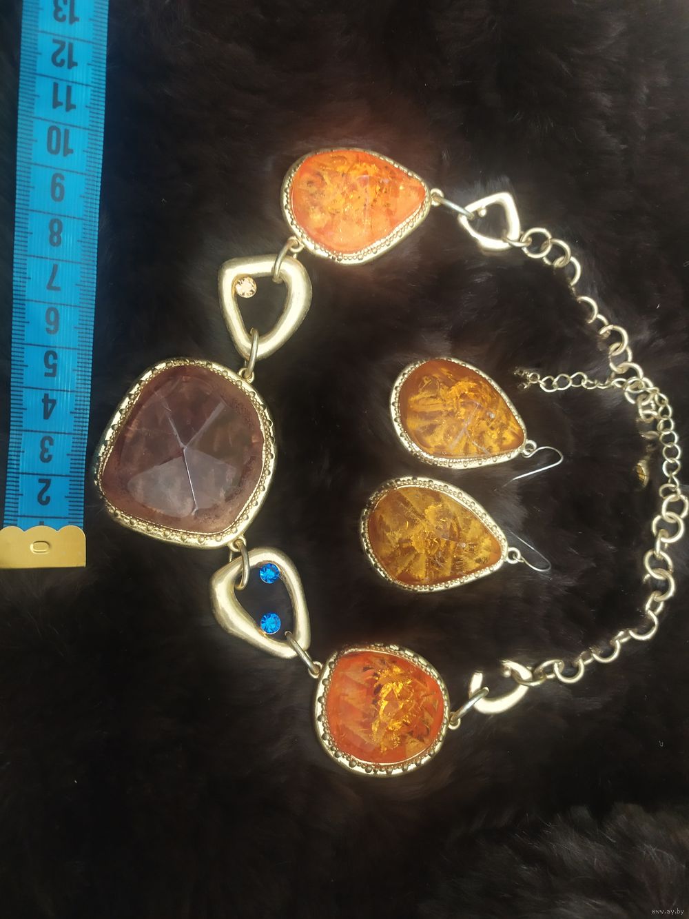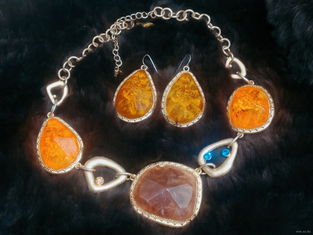 Марокканский винтажный комплект из искусственных камней, серьги и колье.