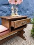 Выполнена из дуба и имеет выразительную резную отделку в форме цветка на боковых ножках.