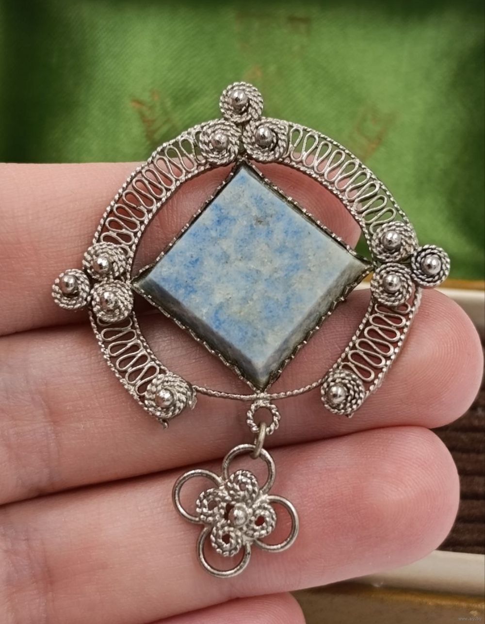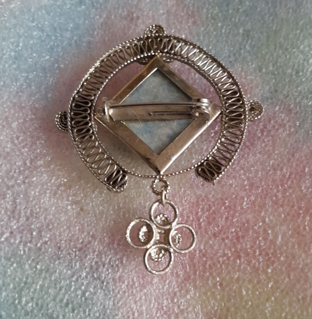 Винтажная брошь Филигрань с камнем.