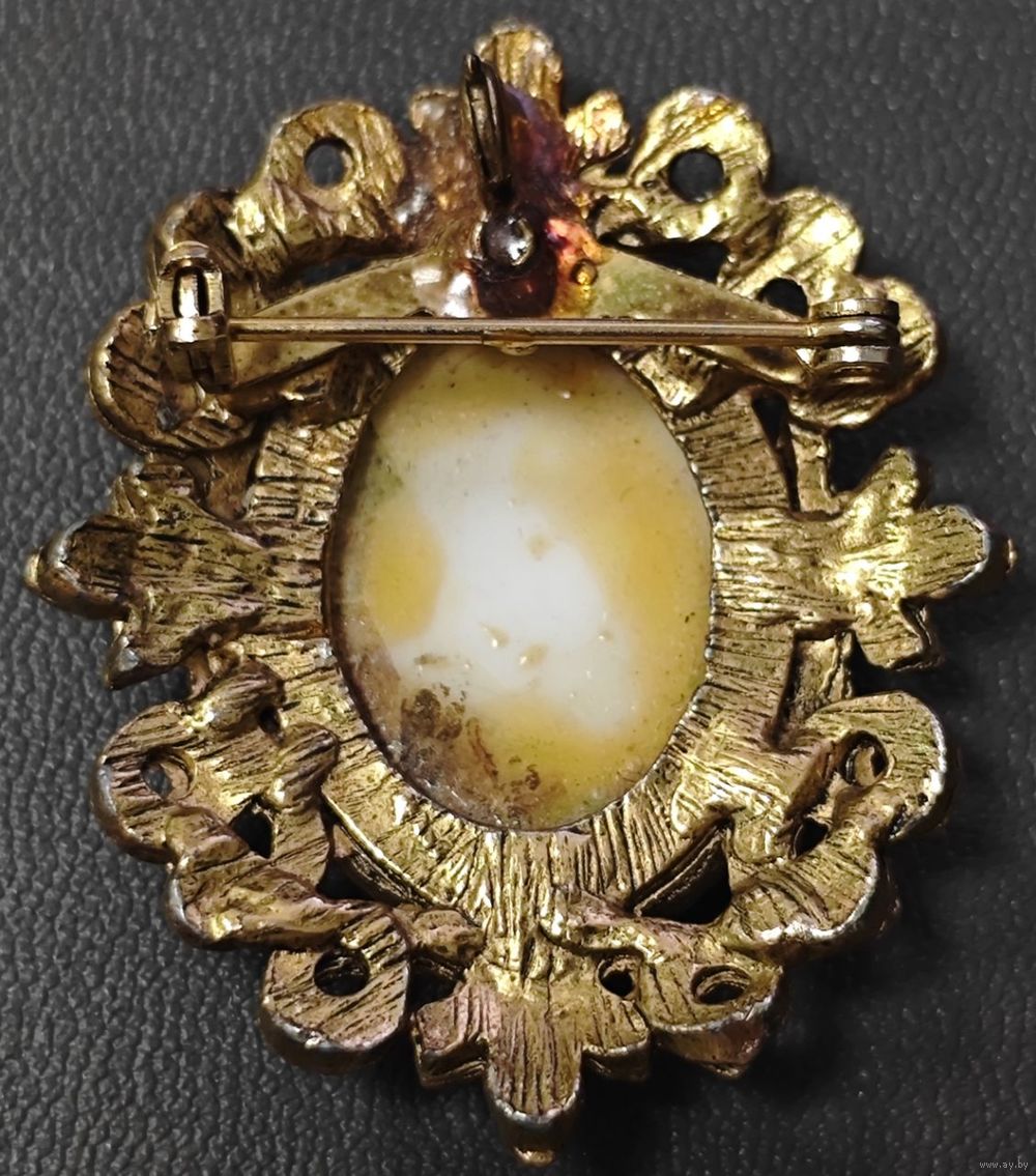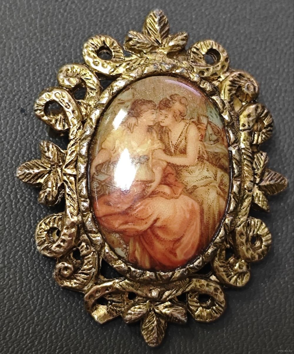 Винтажная брошь, тяжелая. Сюжеты Фрагонара. Чехия времен СССР. Нечастая