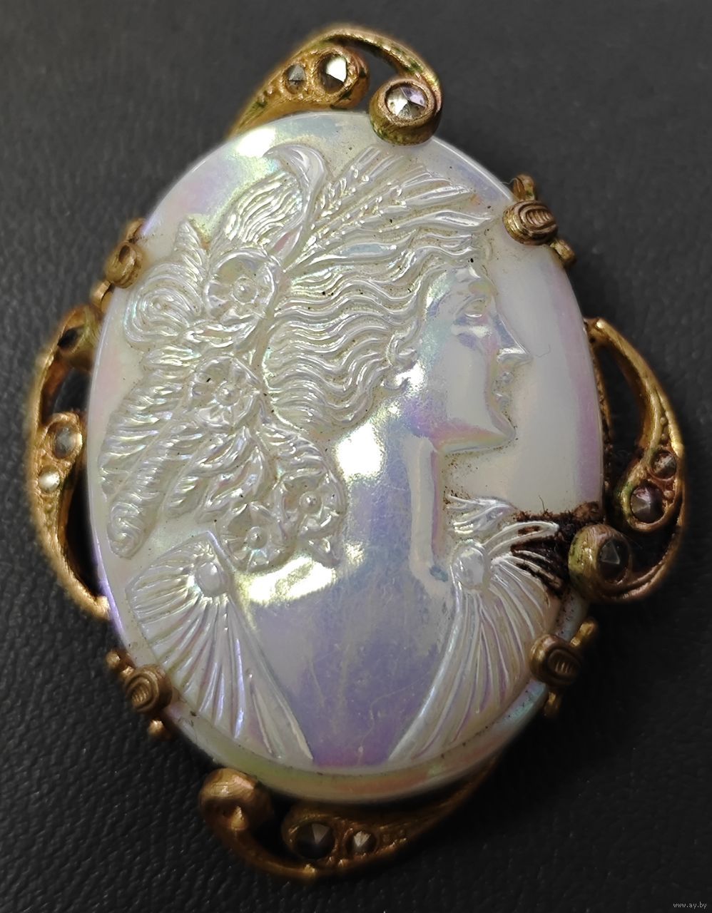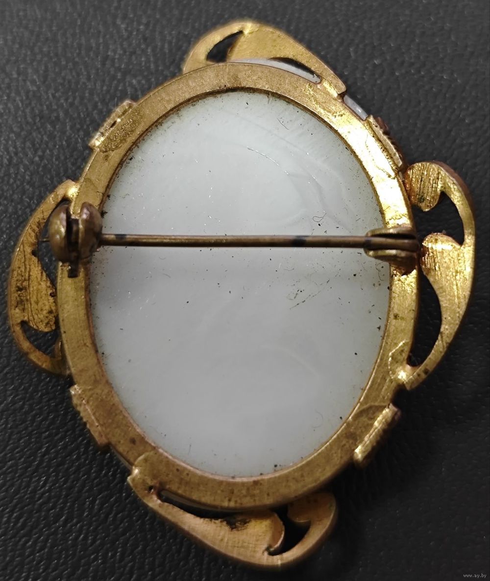 Винтажная Чешская брошь Камея, глушёное стекло, времён СССР. Очень эффектная