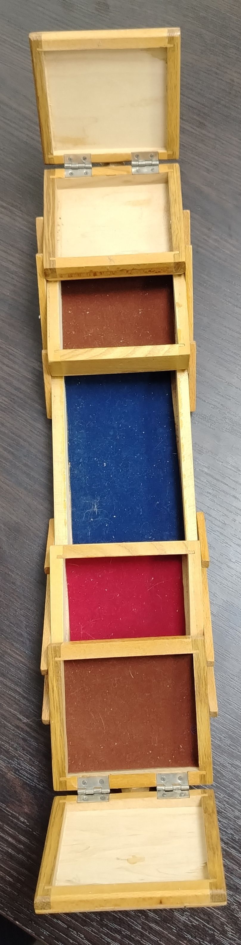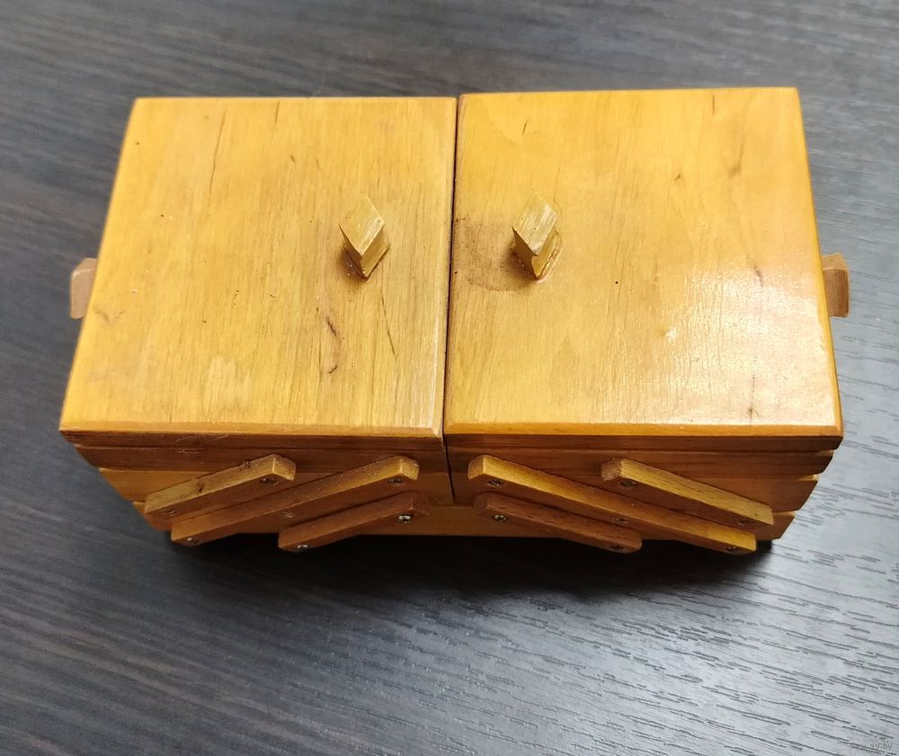 Винтажная трехъярусная деревянная шкатулка (гармошка ) . размеры длинна 18см высота 8 см ширина 10см . в разложенном виде 46см . вес 426 грамм . б\у в хорошем состоянии . Ставьте ставки за сколько бы хотели приобрести на лоте установлена минимальная , при ее не достижении аукцион будет несостоявшимся .