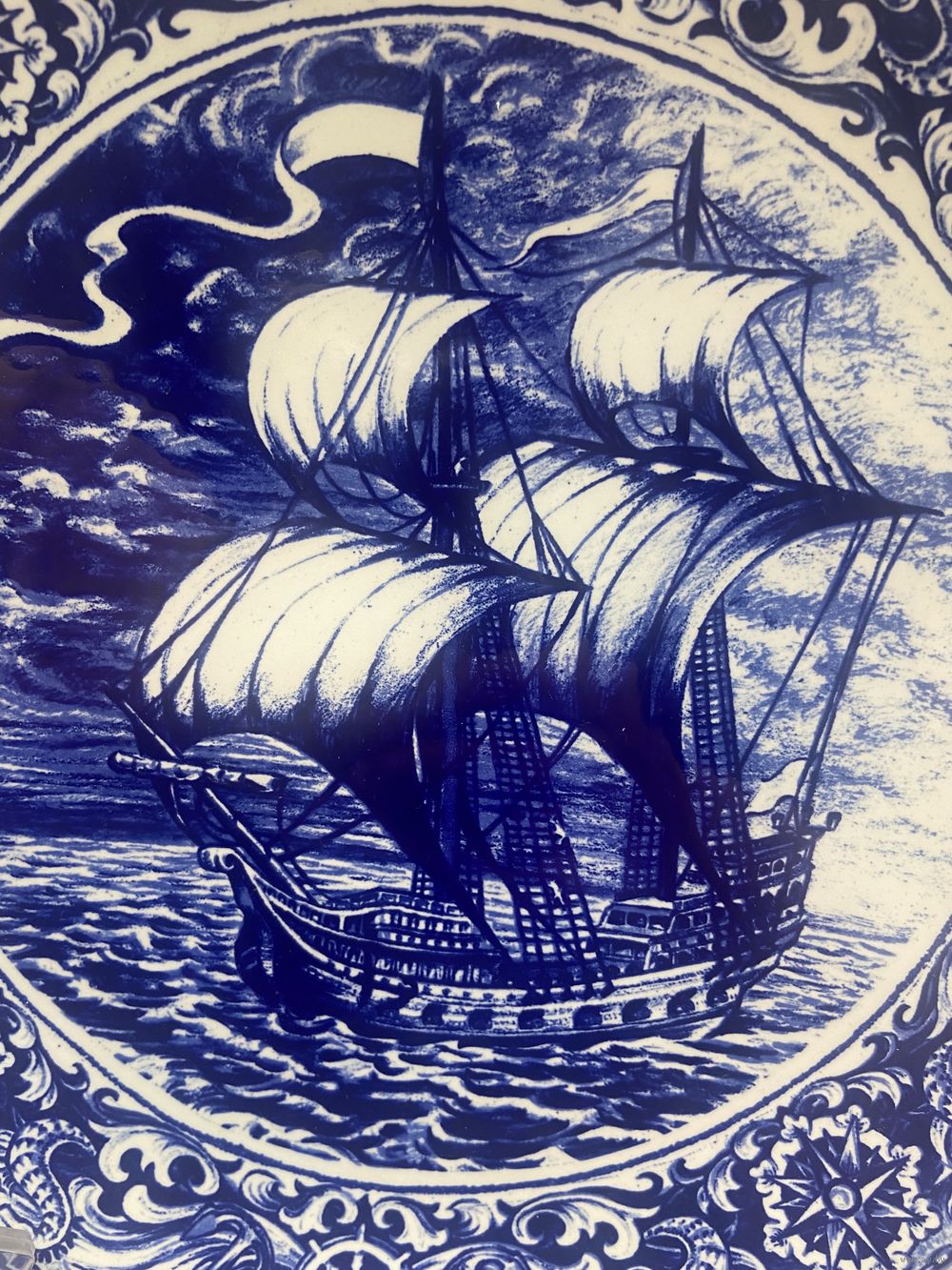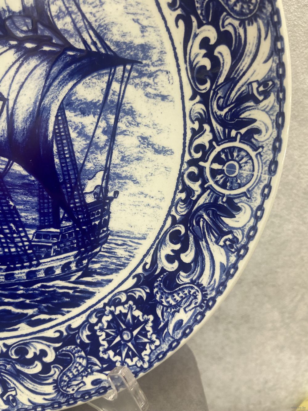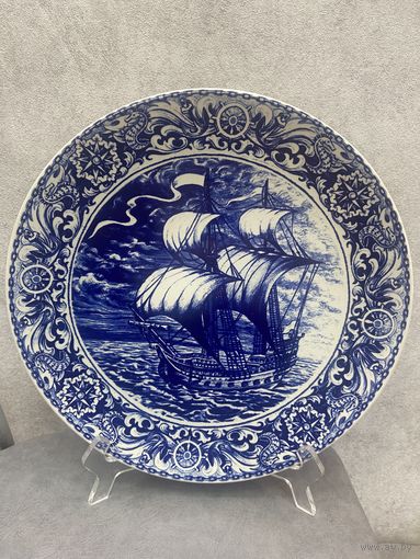 ВИНТАЖНАЯ фарфоровая настенная тарелка DELFT BOCH SAILING SHIP 29 см Бельгия
