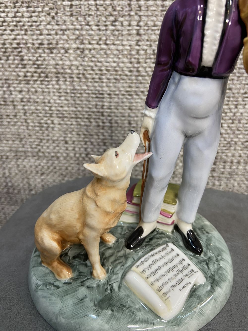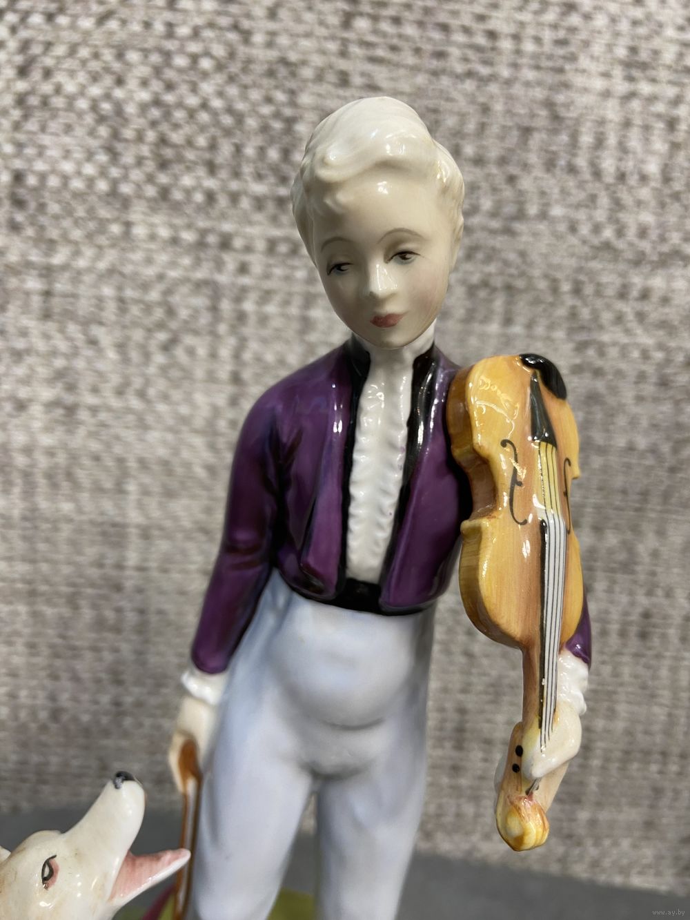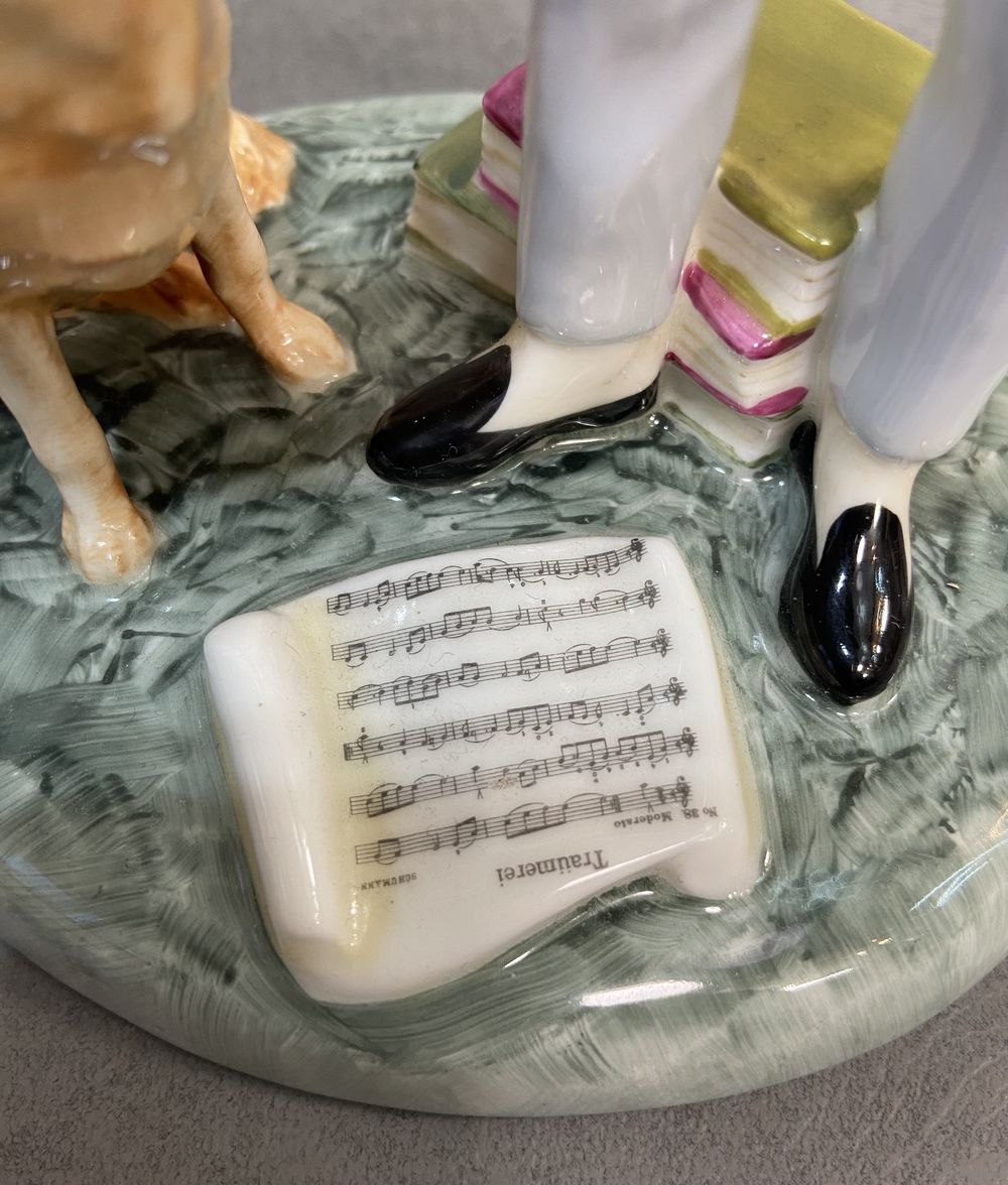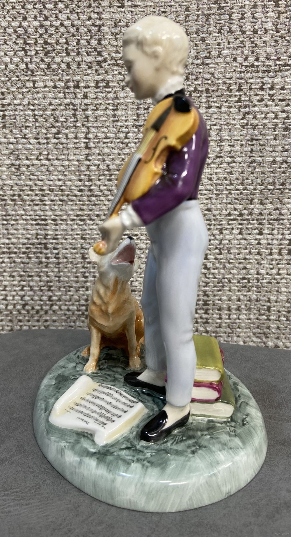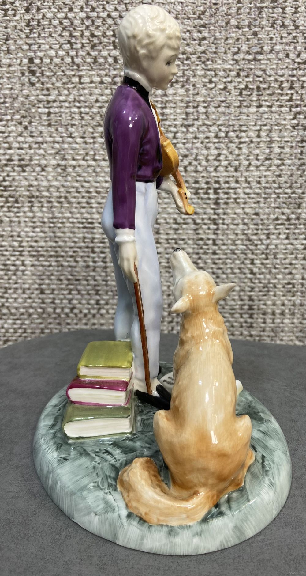 Винтажная фарфоровая статуэтка Англия Royal Doulton 2872 Young Master Мальчик со скрипкой и собакой. 16 х 18 см