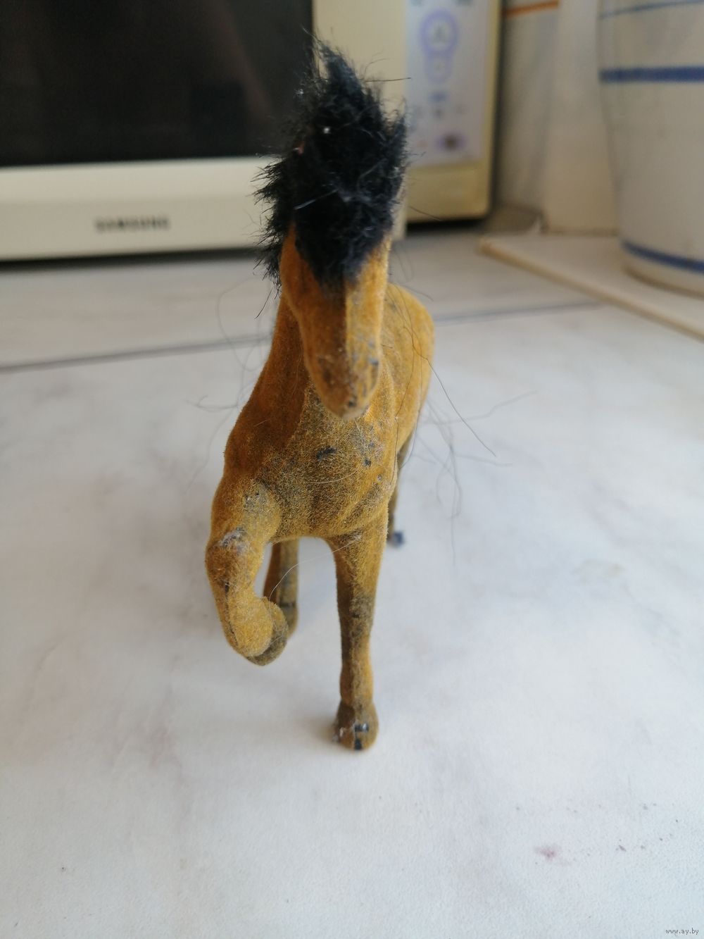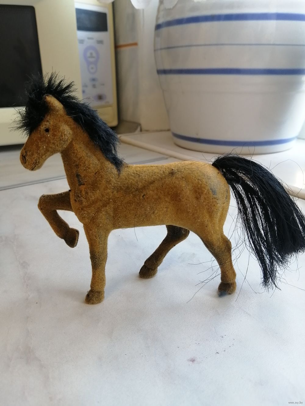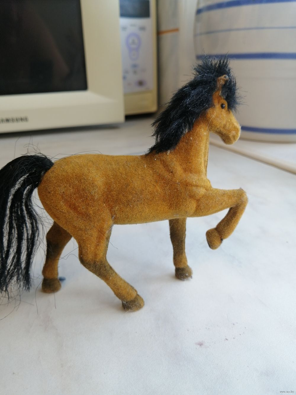 Винтажная (?) флокированная фигурка лошади