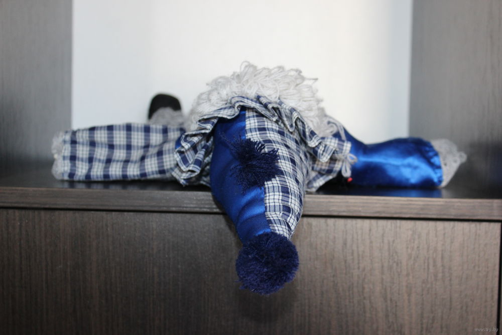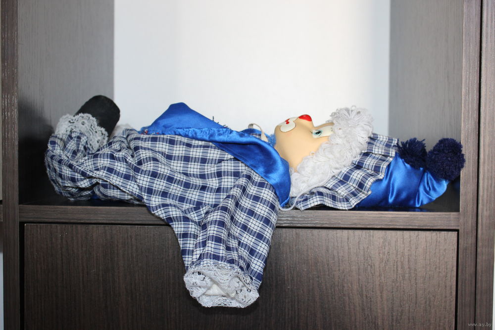 Лицо куклы выполнено из керамики с ручной росписью, а тело мягконабивное.