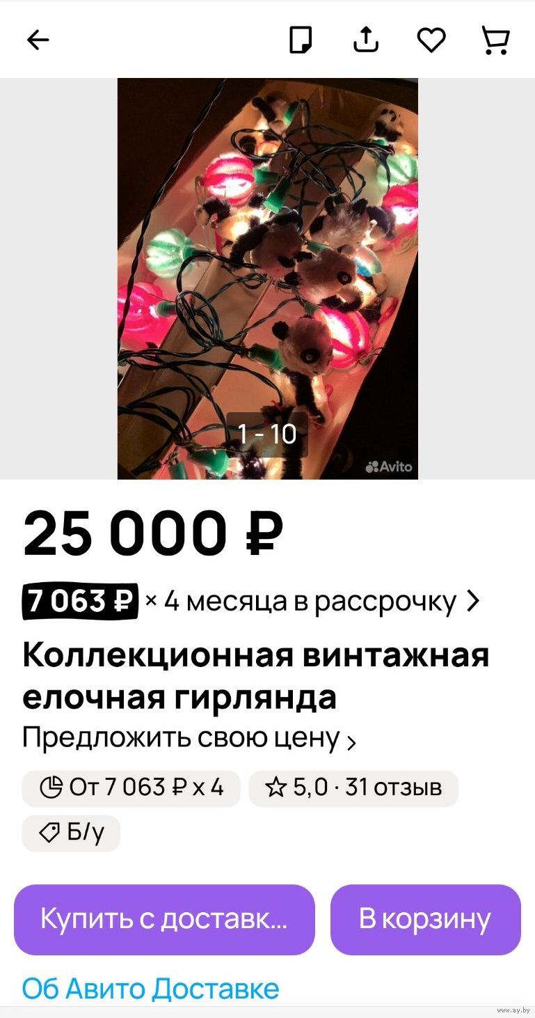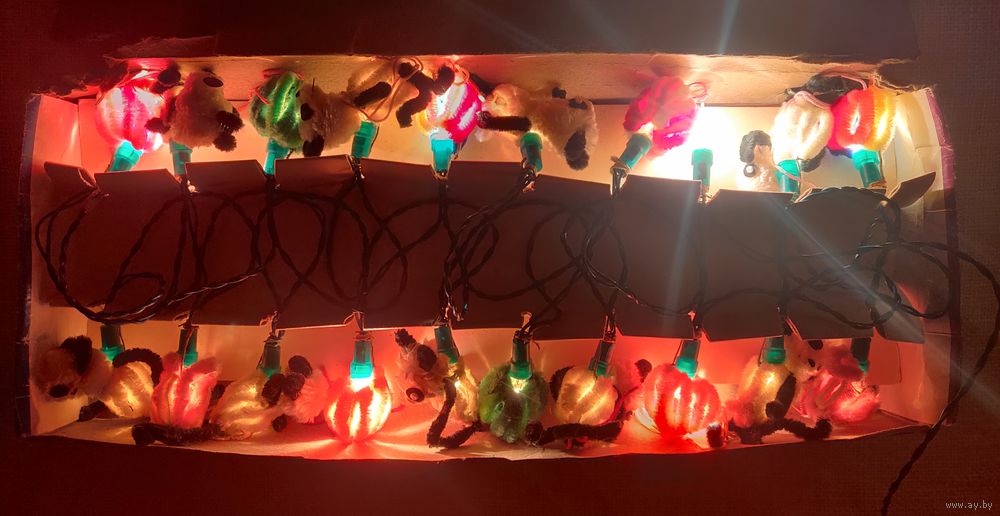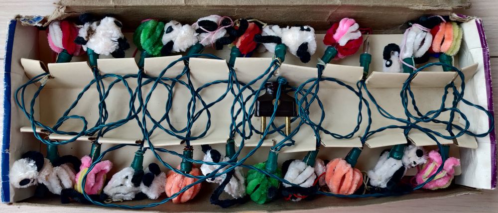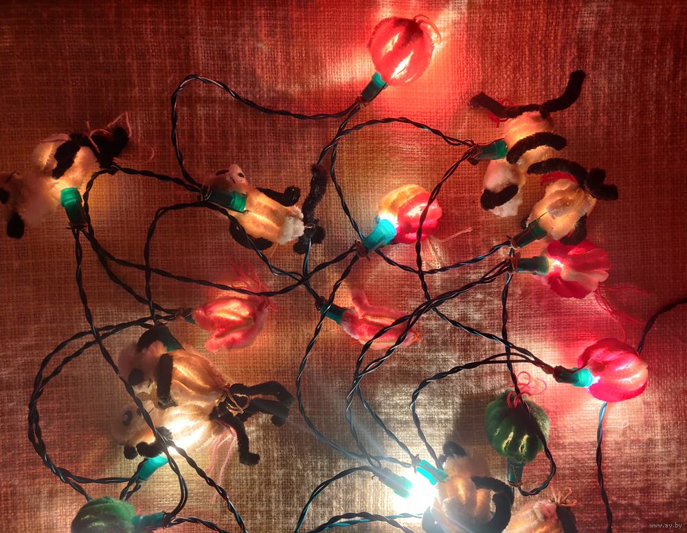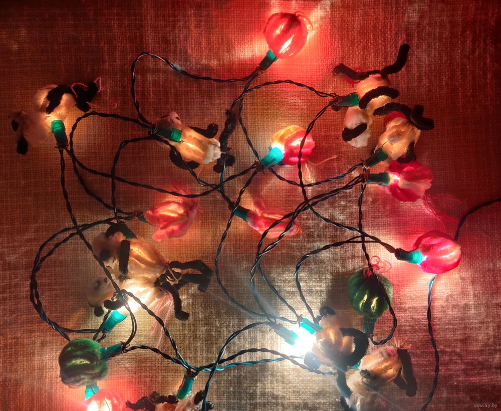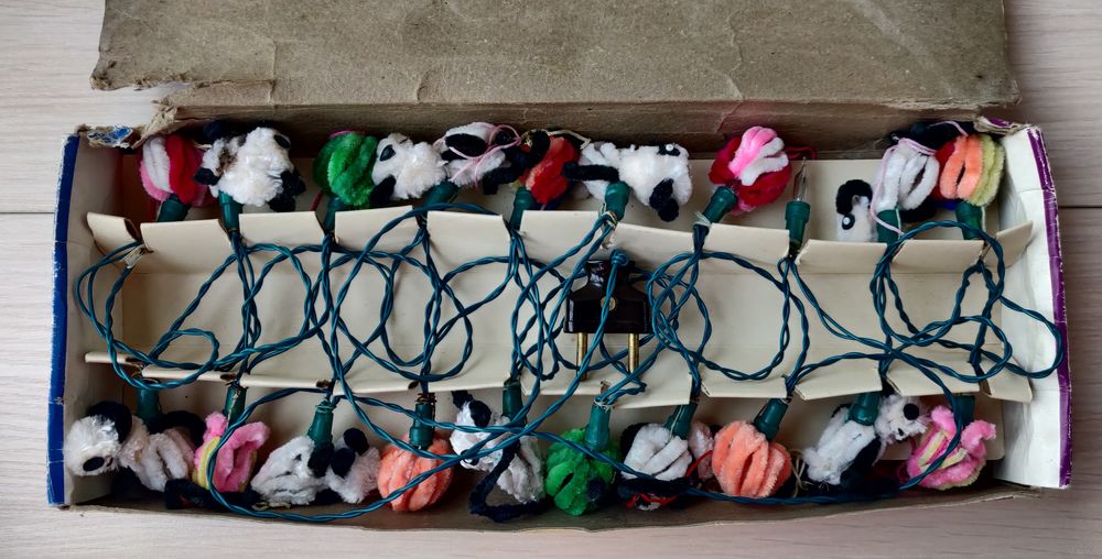 Коллекционная новогодняя елочная гирлянда предположительно 1950-1960х годов, старый Китай, в родной коробке, рабочая.