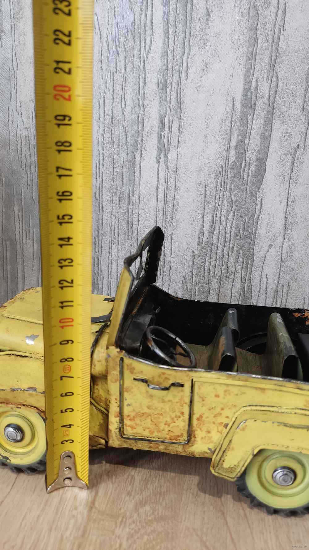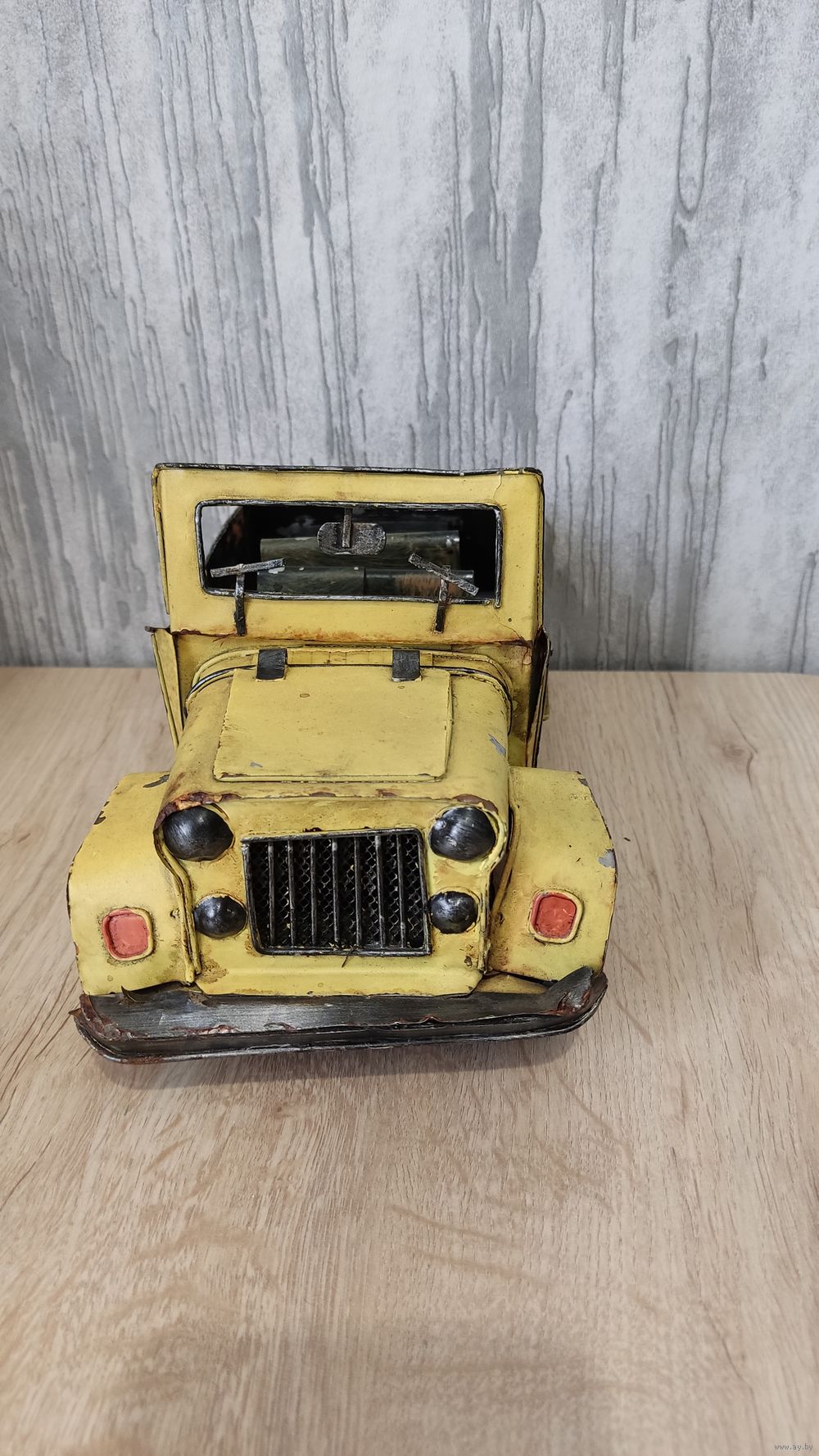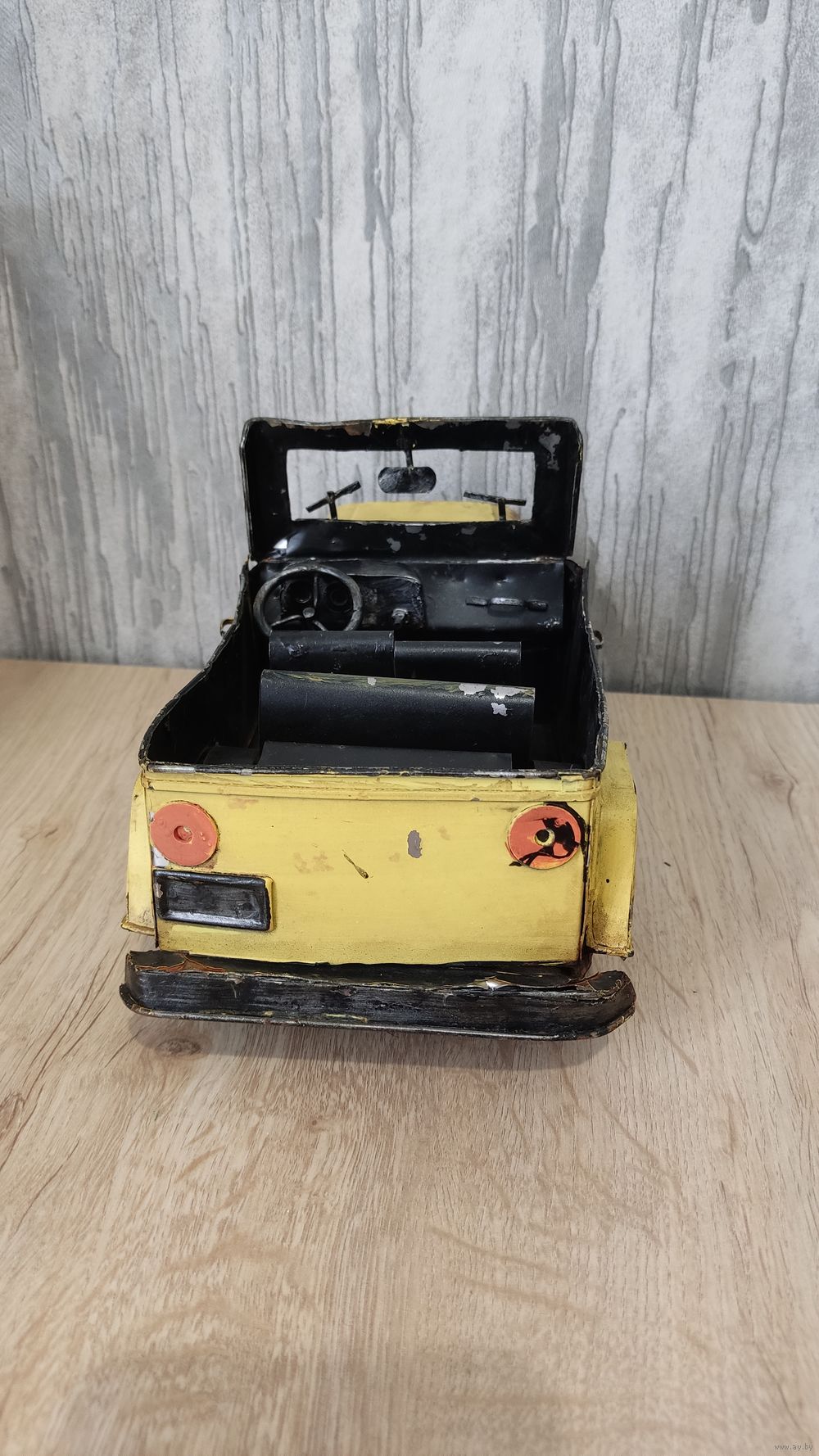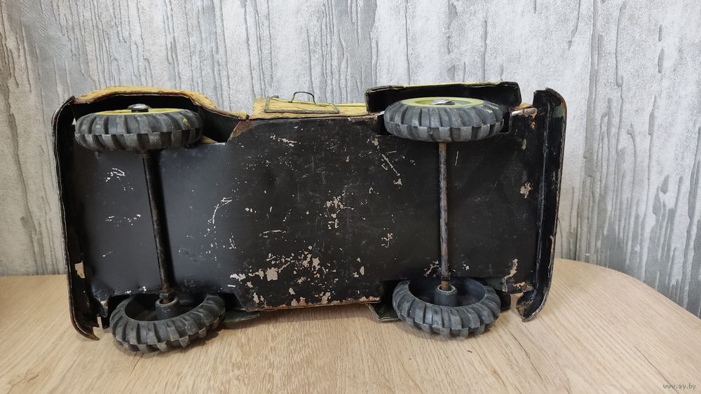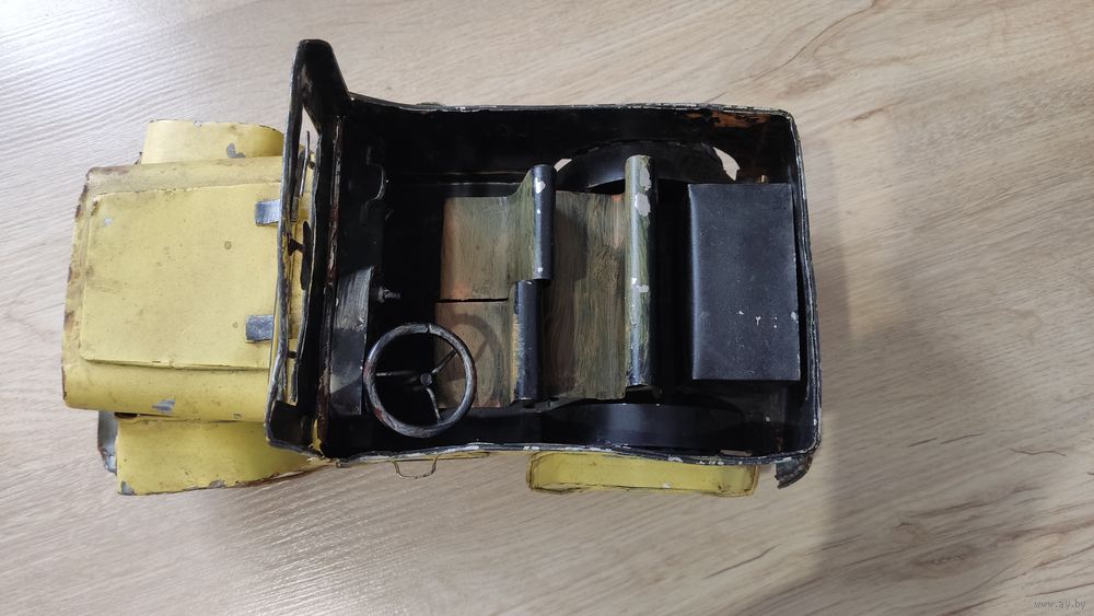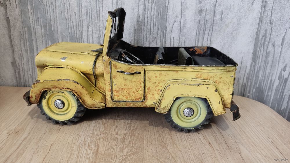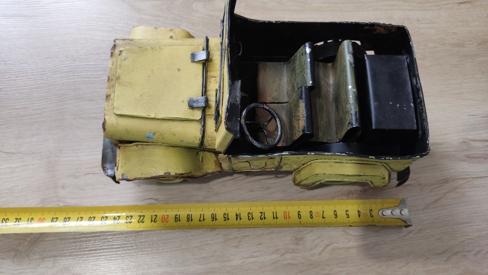 Это винтажная коллекционная игрушка, изображающая открытый автомобиль, скорее всего, джип, выполненная из жести. Информация из открытого источника.