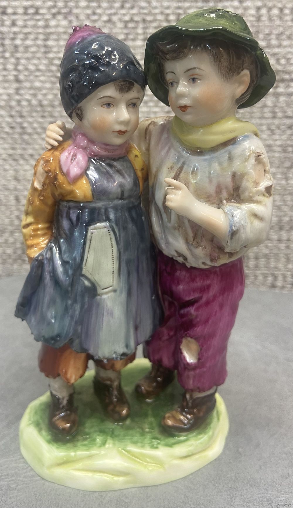 Винтажная немецкая фарфоровая статуэтка "Дети попрошайки" Rudolph Kammer. Высота 15 см.