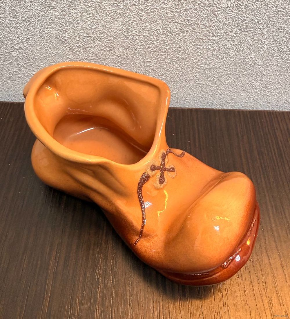 Винтажная пепельница в форме башмака из обливной керамики, произведенная в СССР.