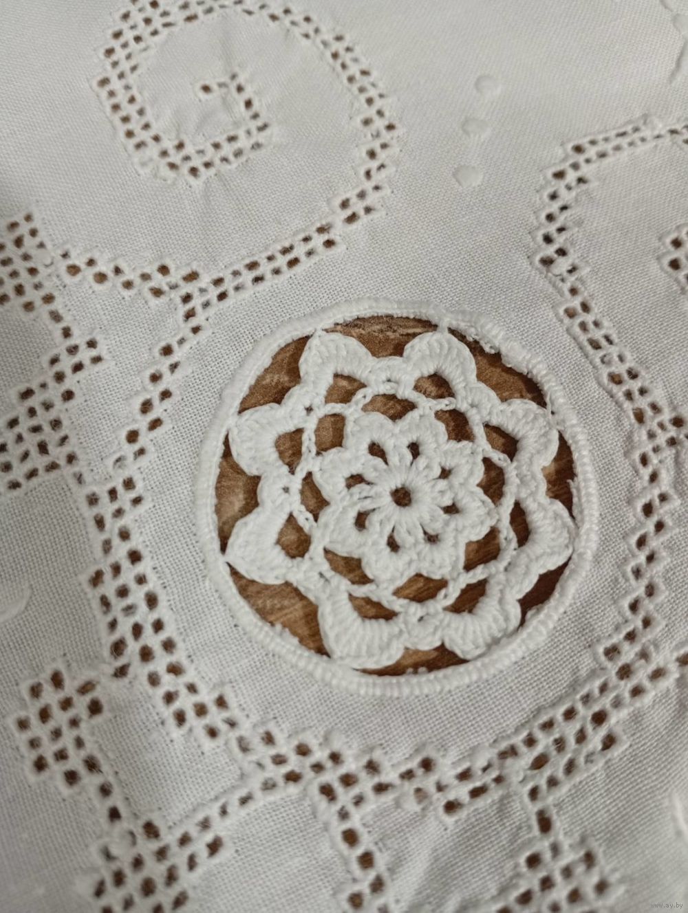Дефекты и пятна не найдены, на последнем фото - утолщенные нити мережки на краю.