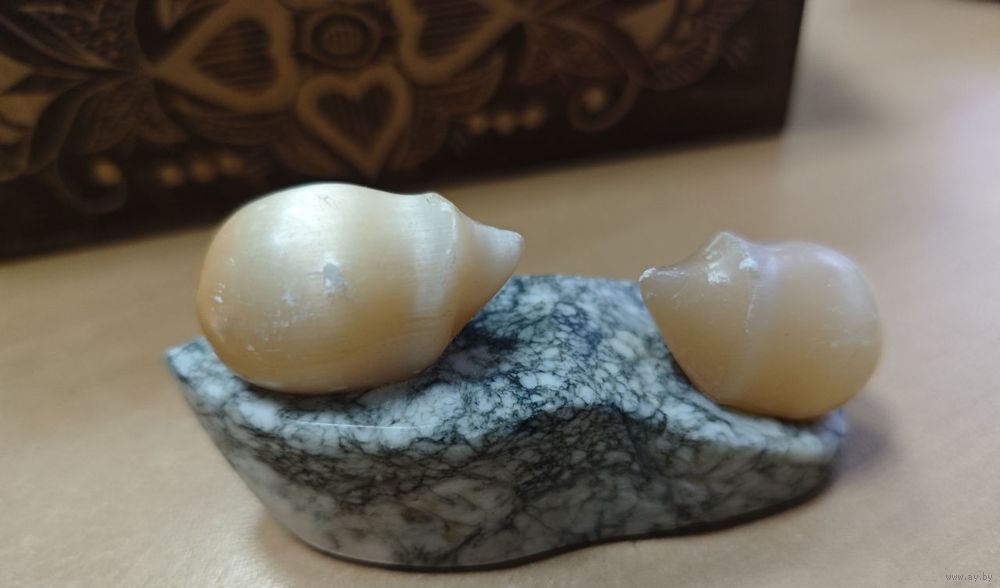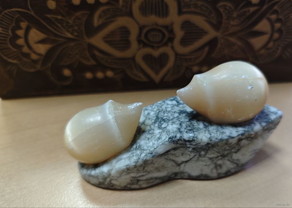 Винтажная советская интерьерная статуэтка из натурального камня на мраморной подставке Ёжики
