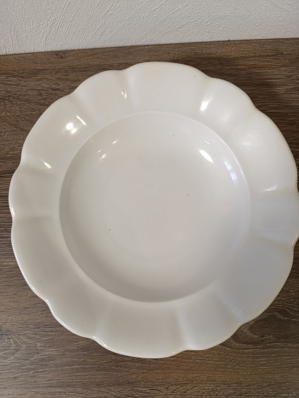 Старинная немецкая фаянсовую тарелка с красивым волнистым краем. На обороте — оригинальное клеймо немецкой керамической фабрики (ориентировочно 1900–1950 гг.).