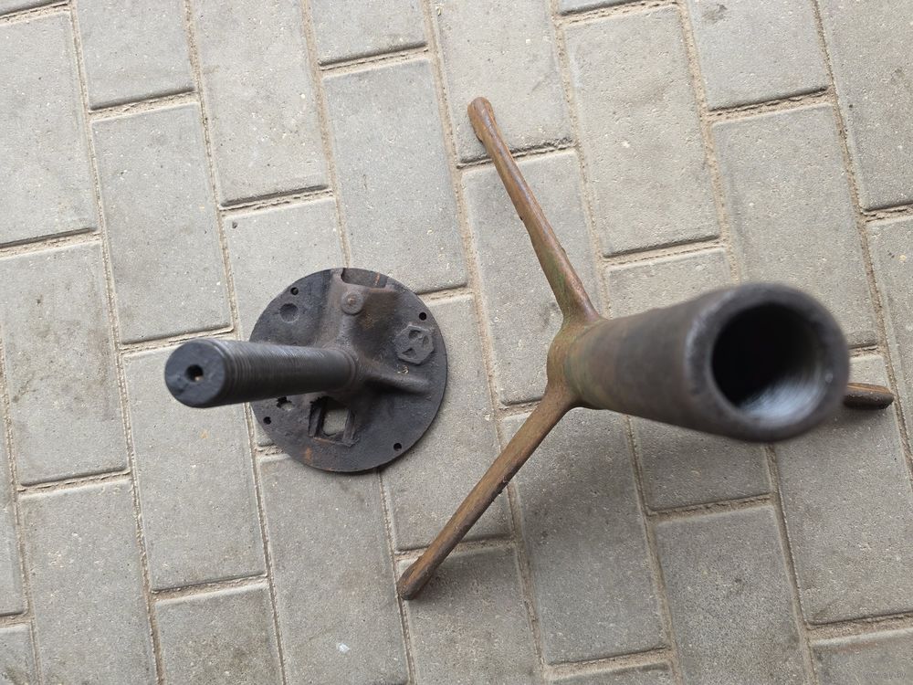 Максимальная высота 59 см, мин-39 см. Площадка 16,5 см, ноги-20 см длина, толщина винта 3 см. Воможно был стул.