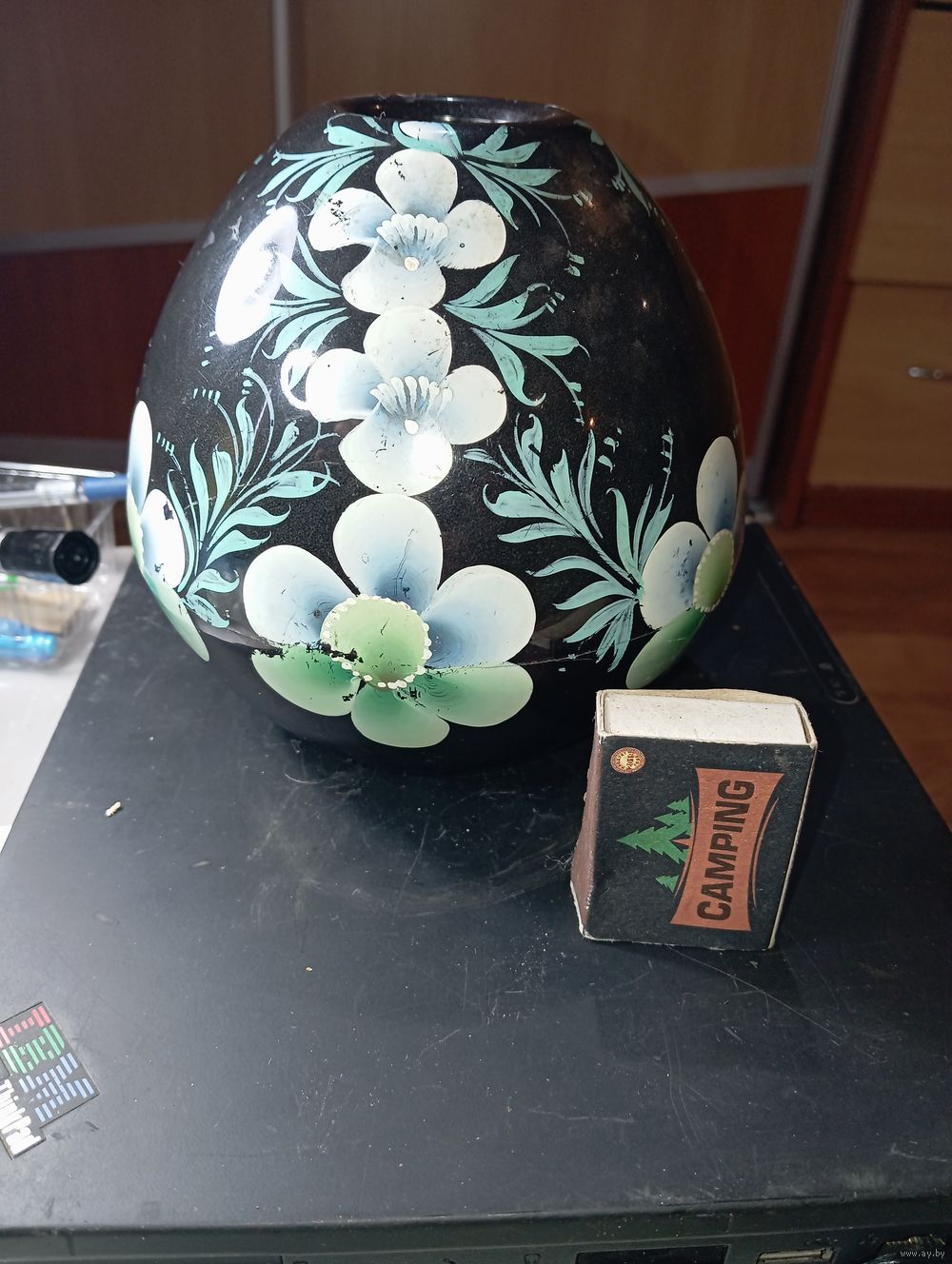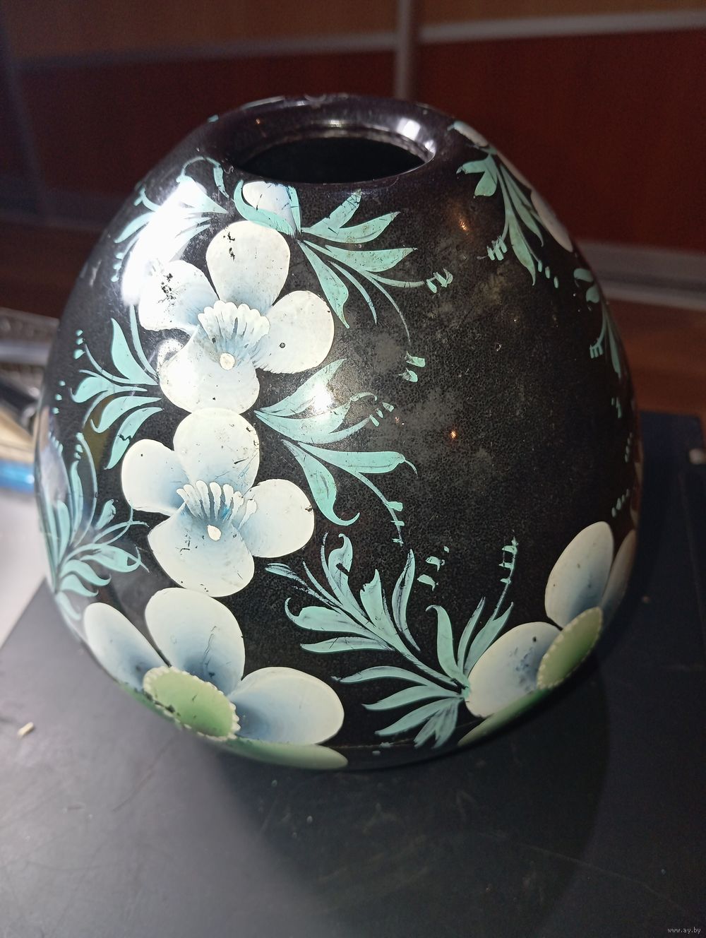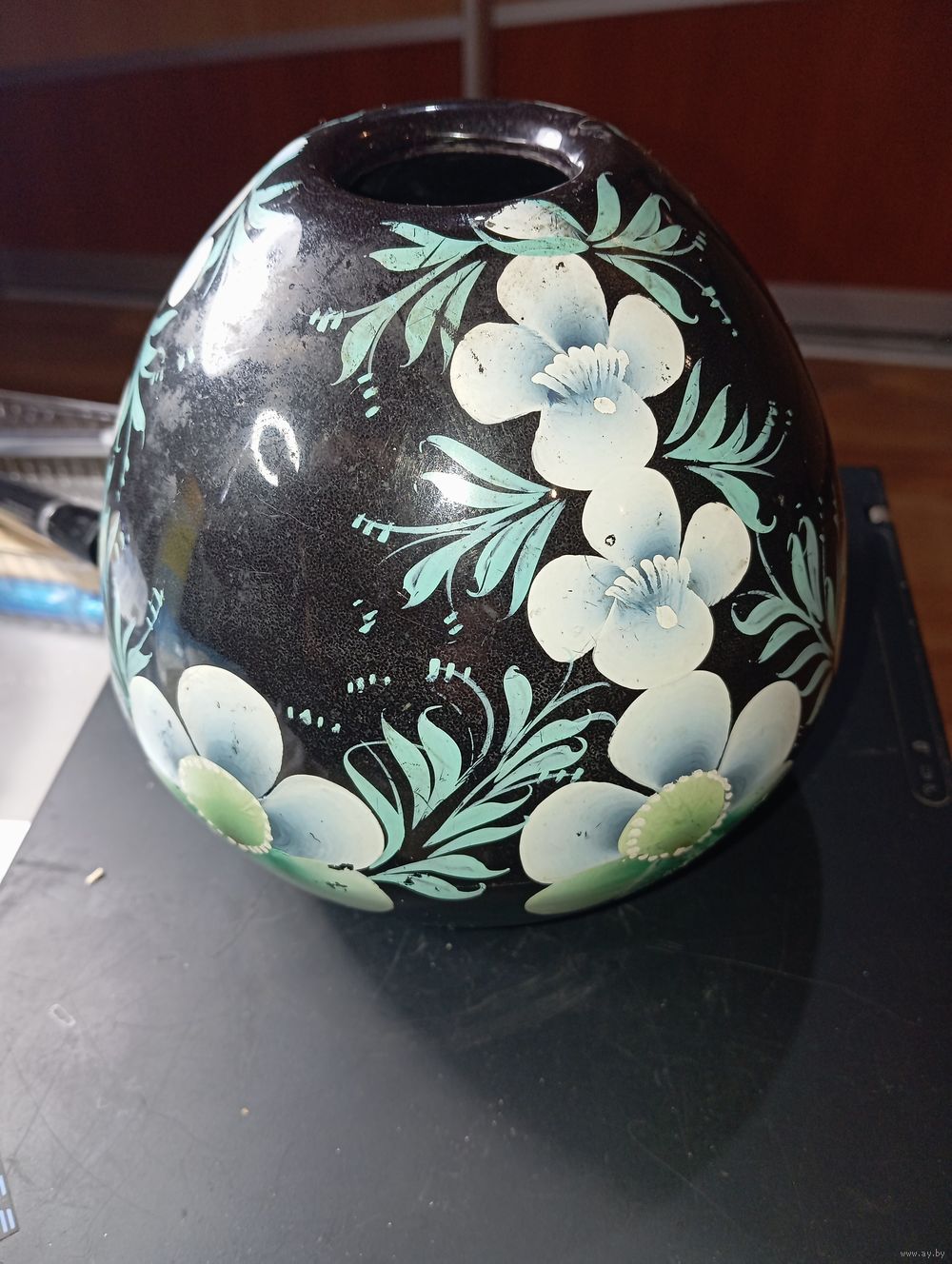 Винтажная ваза или кашпо , ручная роспись .