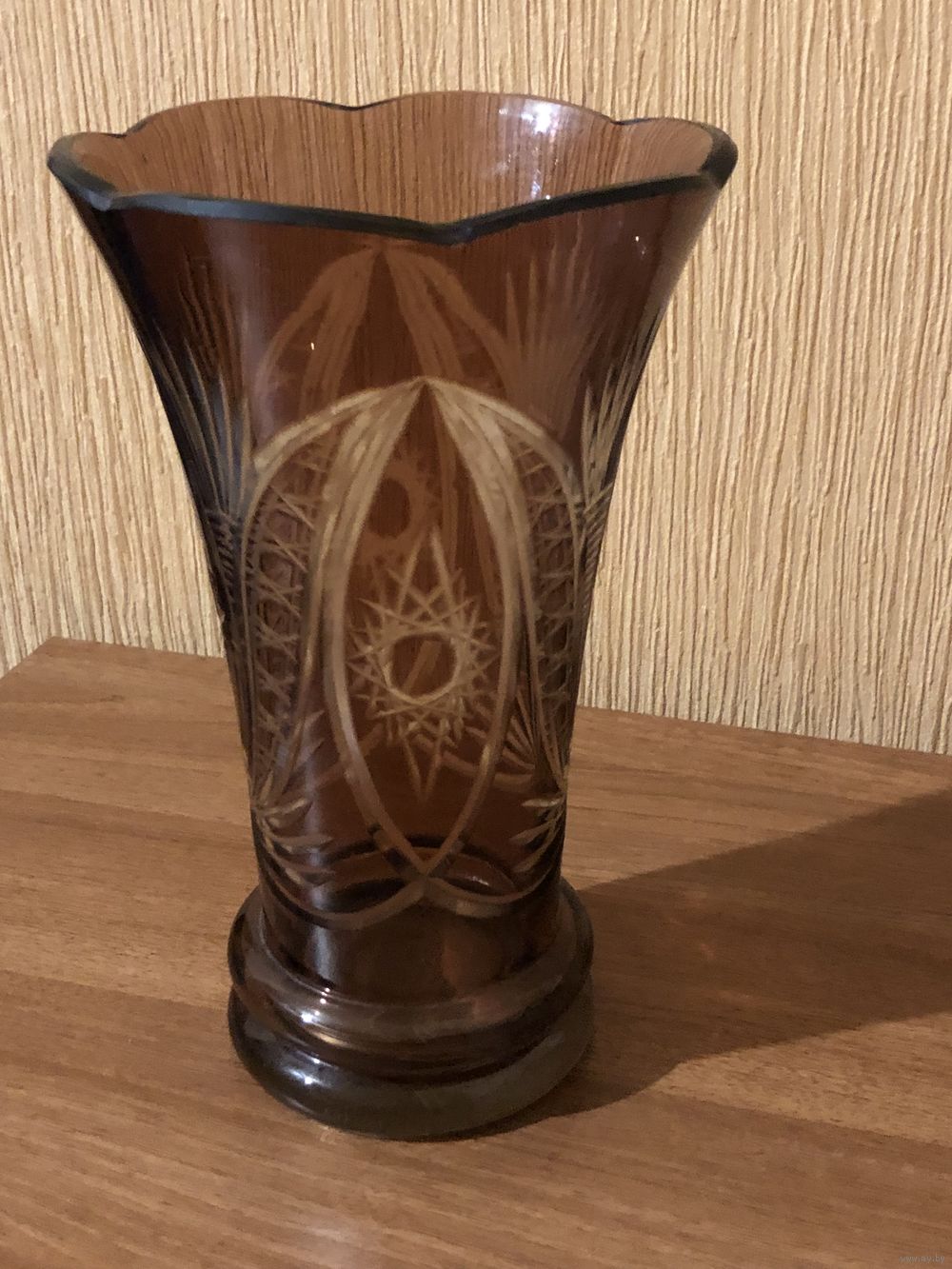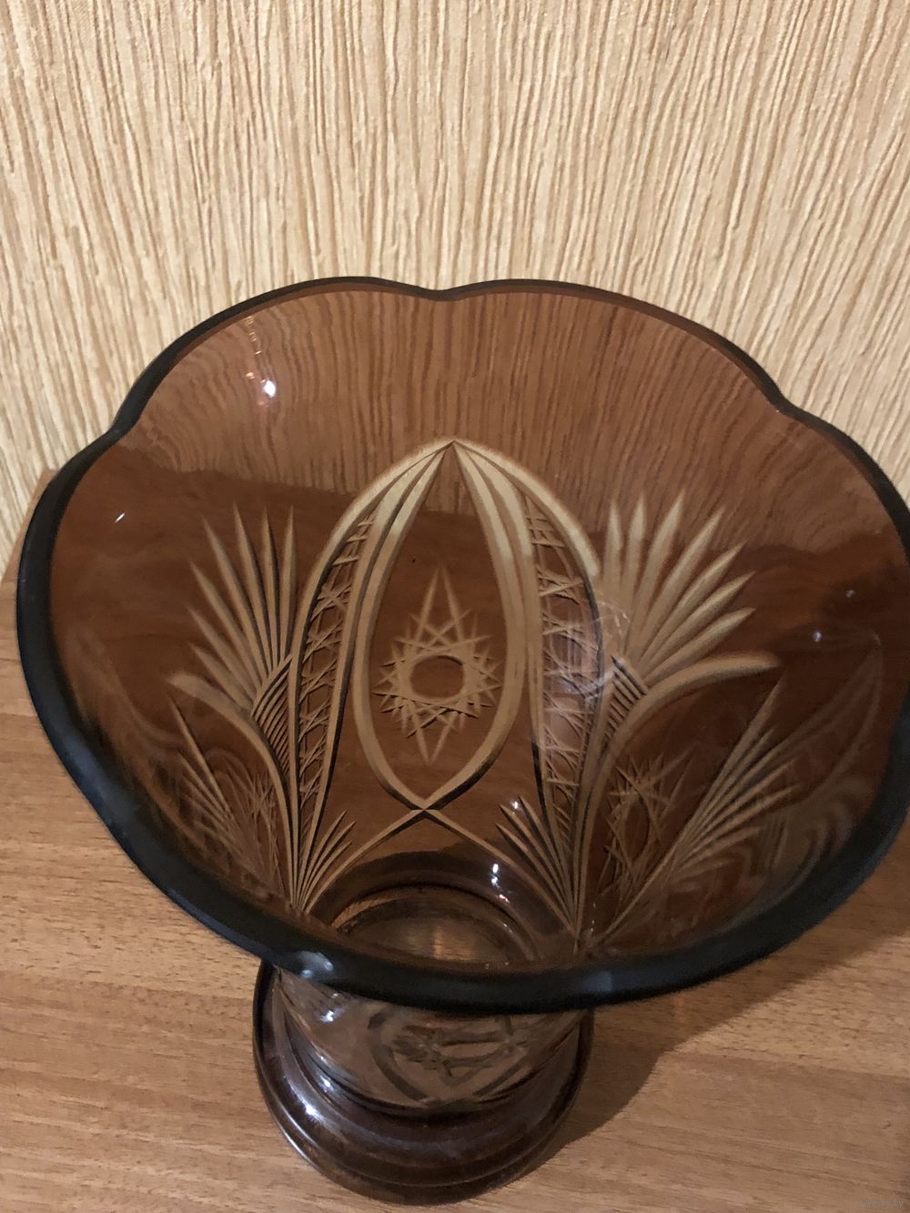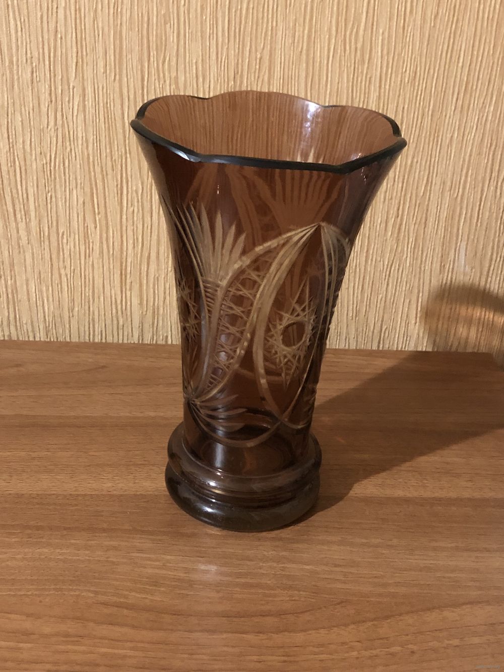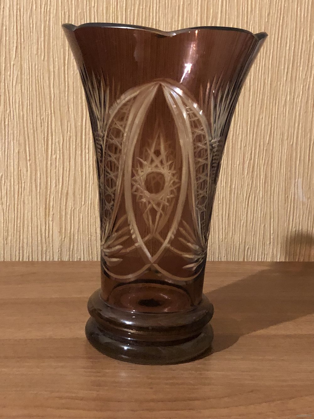 КРАСИВАЯ ВАЗА ЦВЕТНОЙ КРУСТАЛЬ СССР 1930-1950 ГОДЫ БЕЗ СКОЛОВ И ТРЕЩИН ВЫСОТА 23 СМ., ДИАМЕТР ВЕРХА 14,5 СМ.