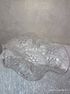 Толстое рельефное стекло, ассиметричная, редкая. Диаметр 23 на 21 см, высота 6,5 см