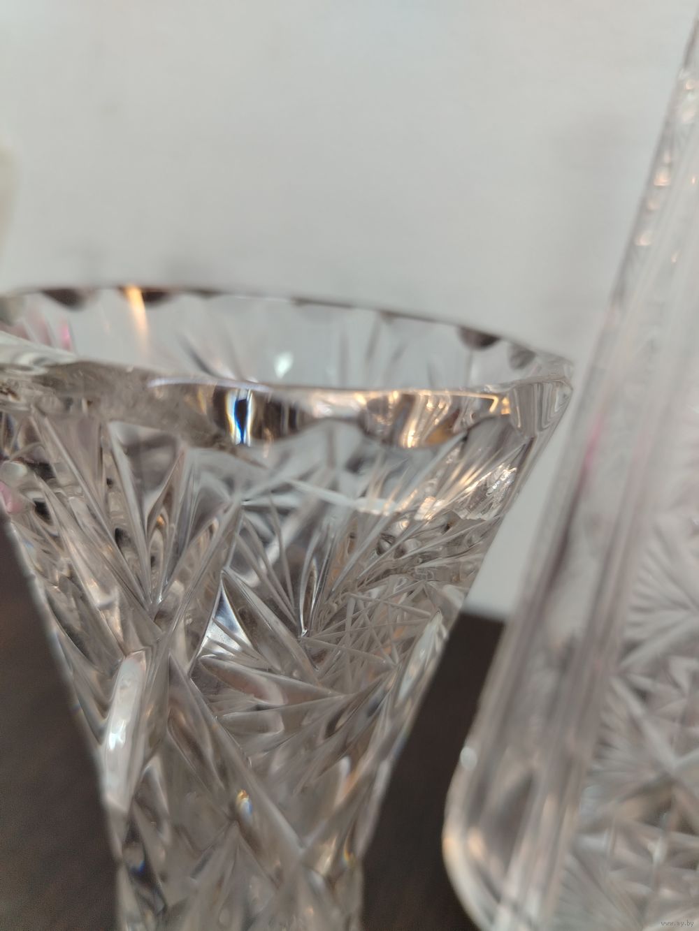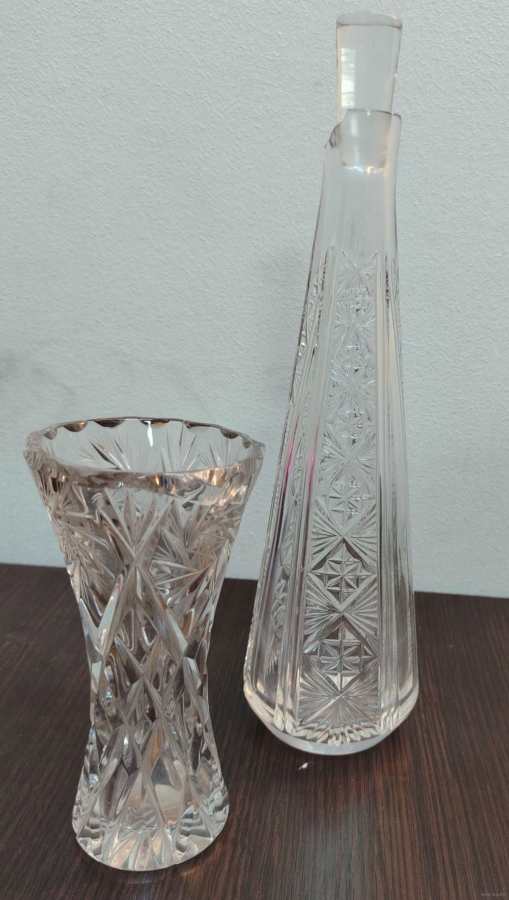 Винтажная вазочка и штоф с пробкой , состояние ваза трещина у штофа немного отбито горлышко на фото все видно