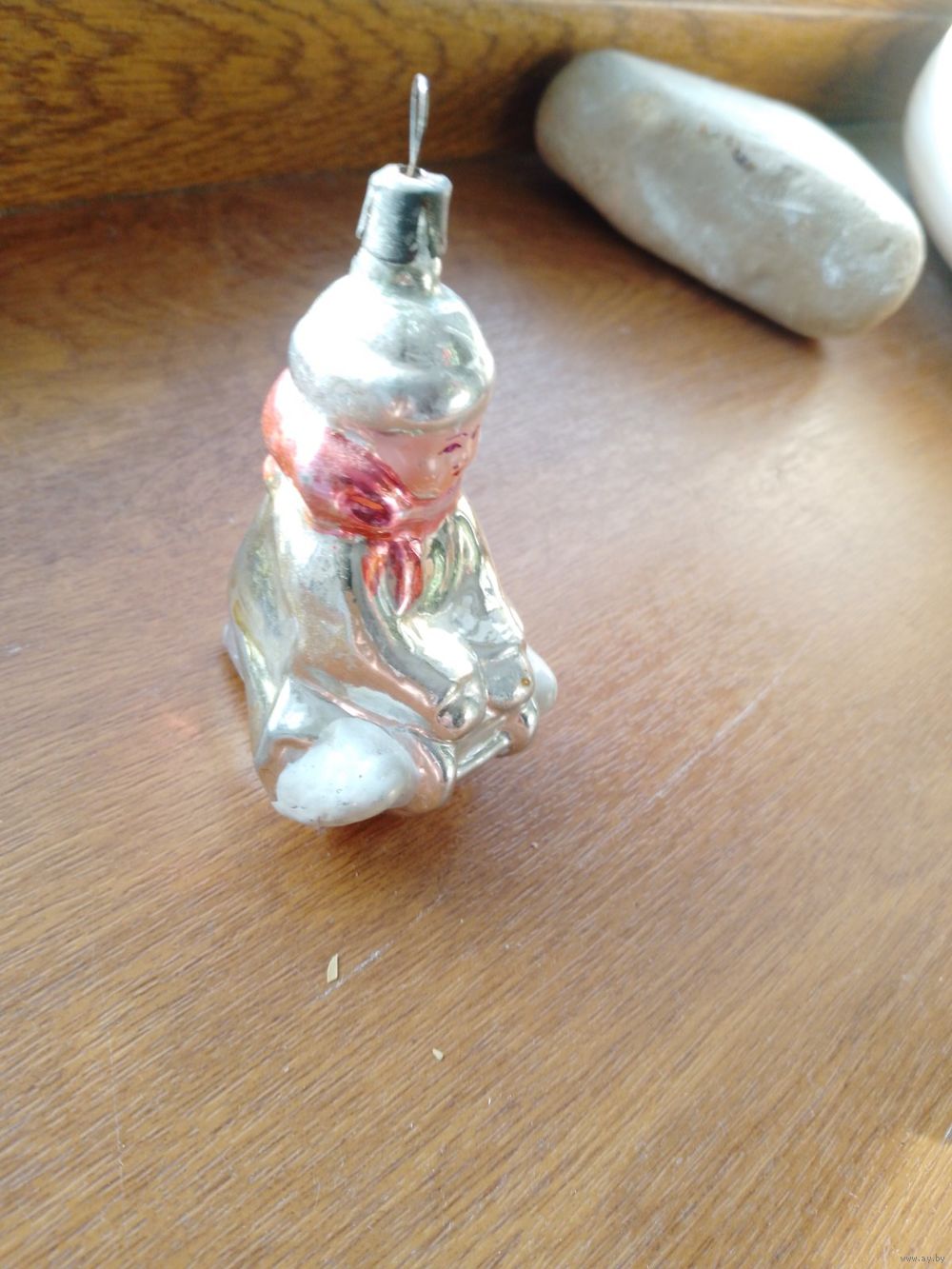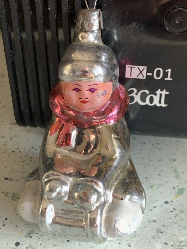 Винтажная ёлочная игрушка Мальчик на санках. Стекло СССР