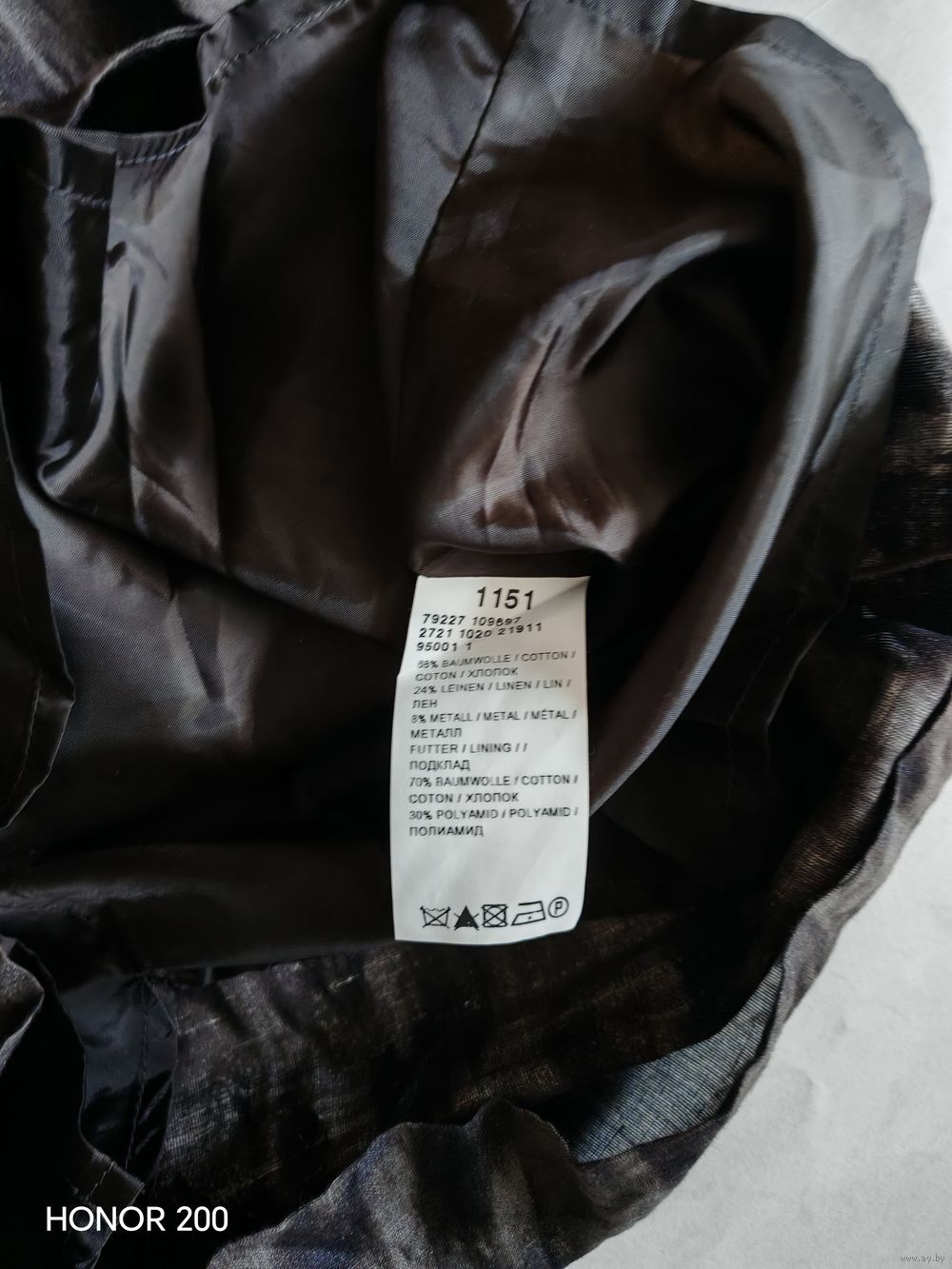 Состав: хлопок 68%, лен 24%, металл 8%. На подкладке.
