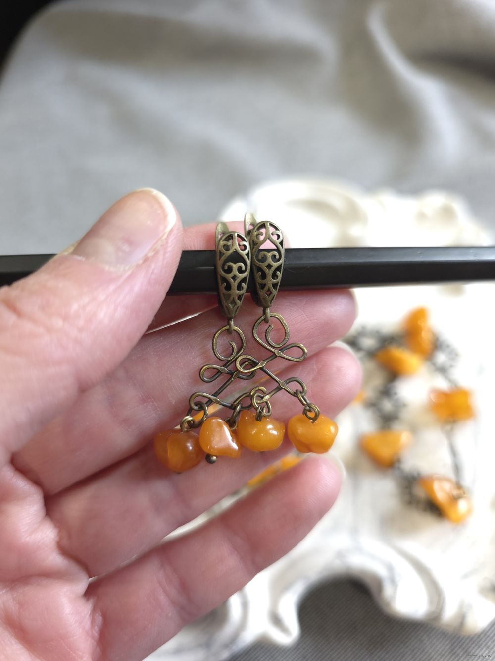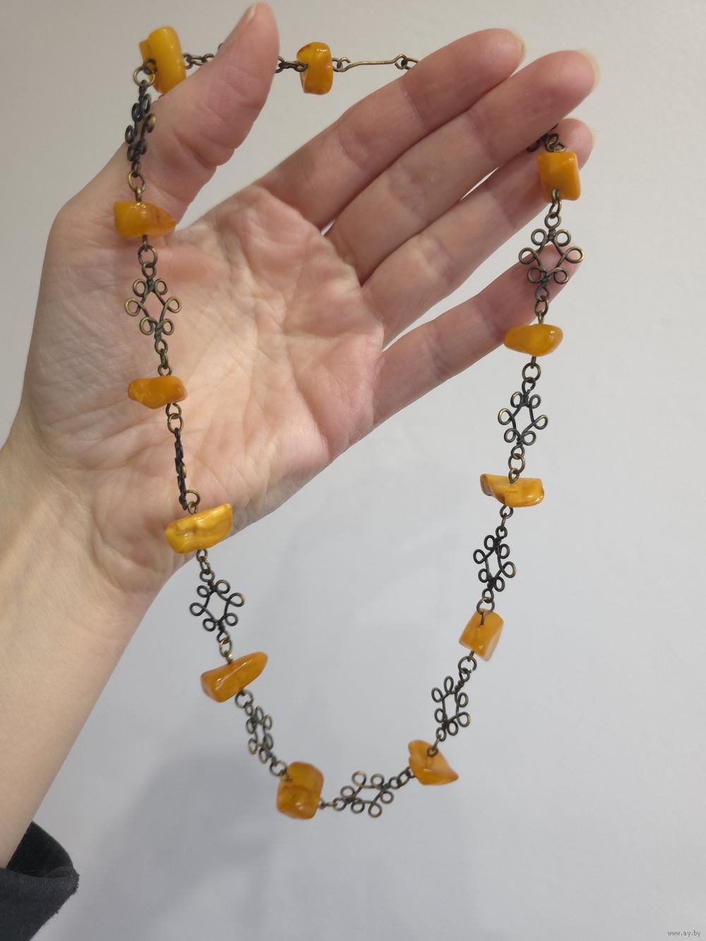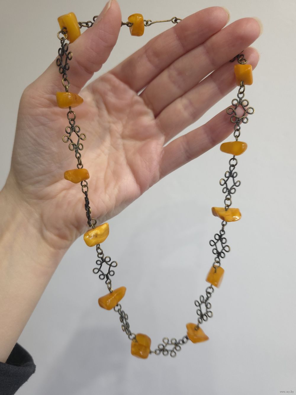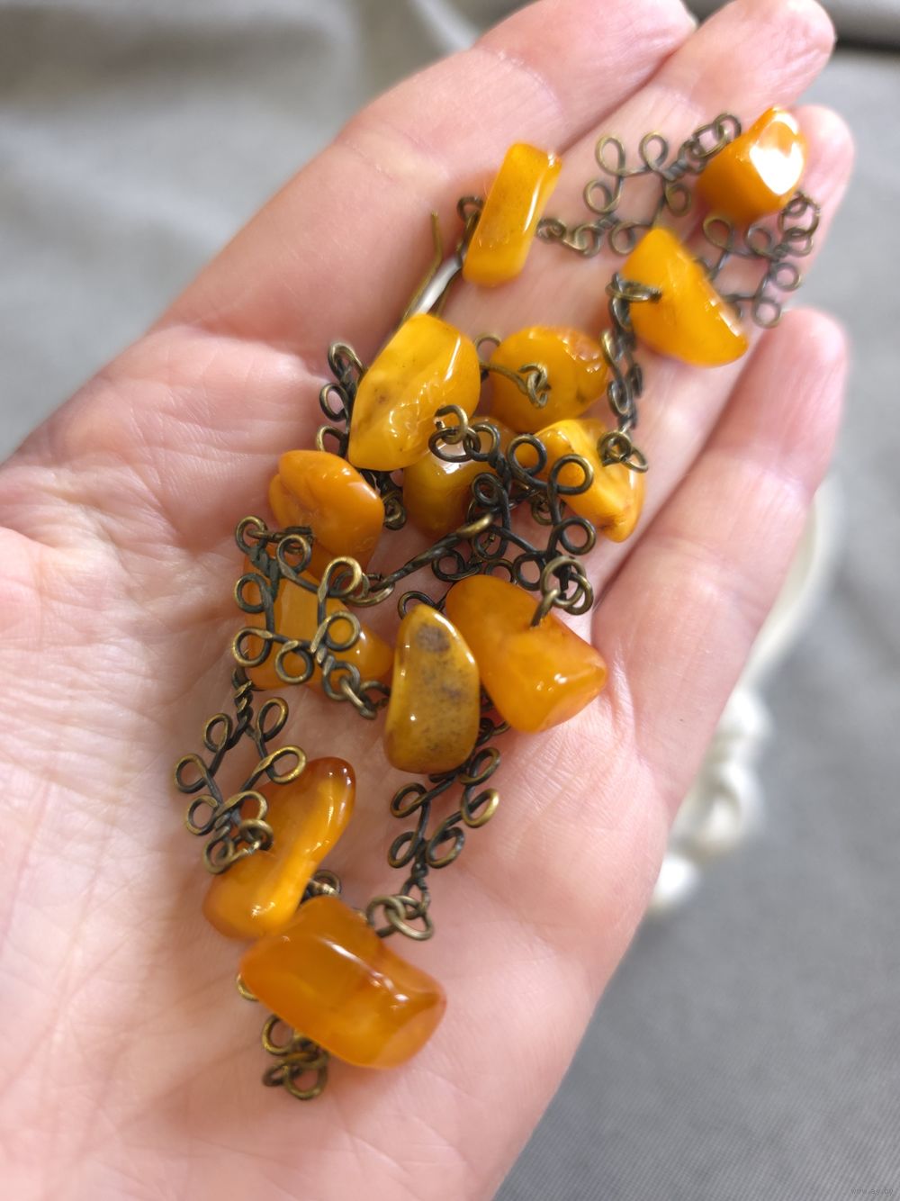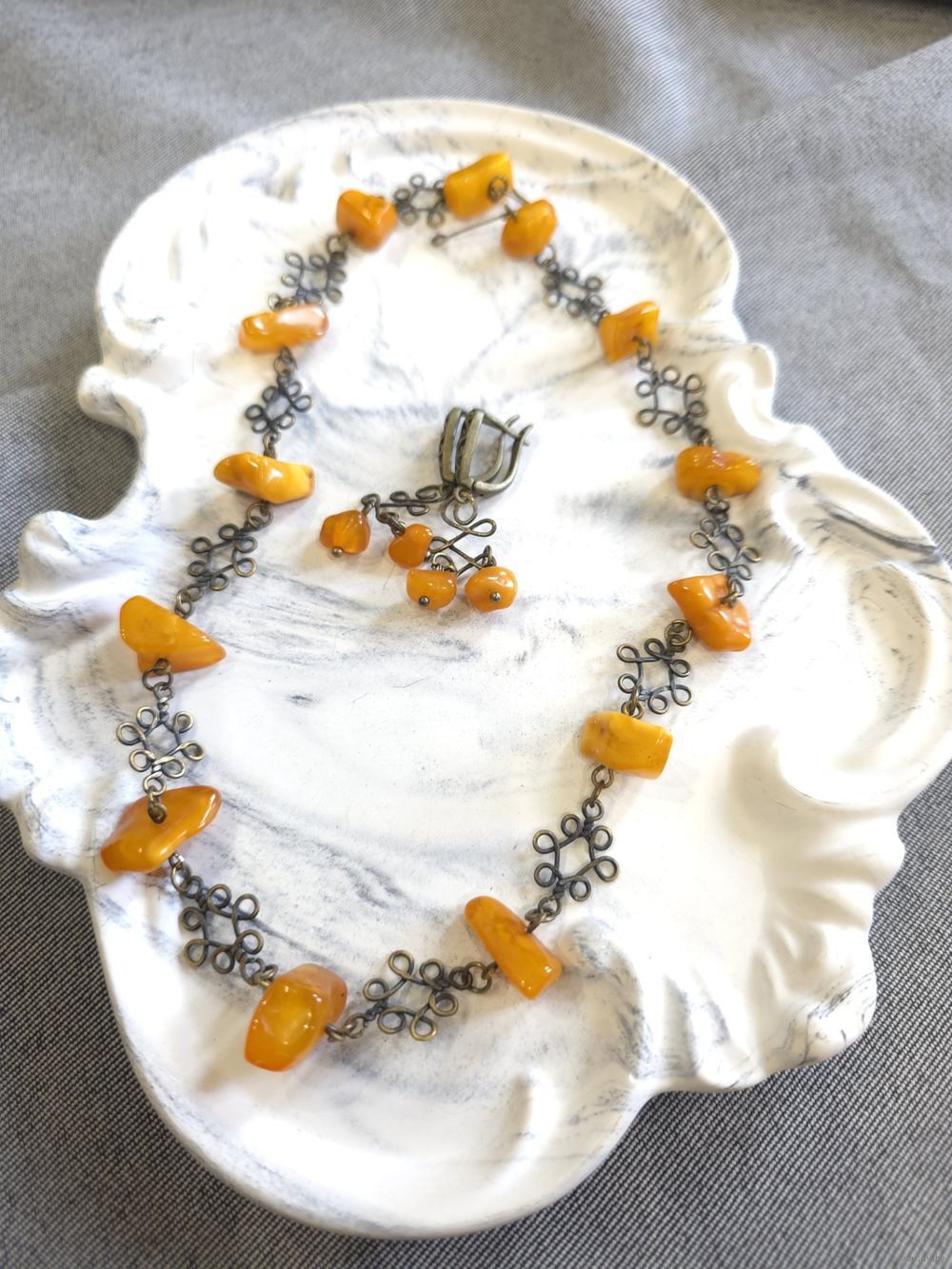 Бусы с натуральным балтийским янтарем (желток). Длина 46 см. Длина серег 4 см.