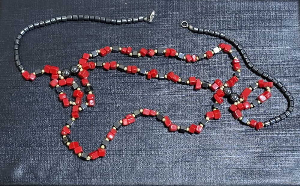 Винтажные бусы со вставками красного цвета, гематит. Времен СССР