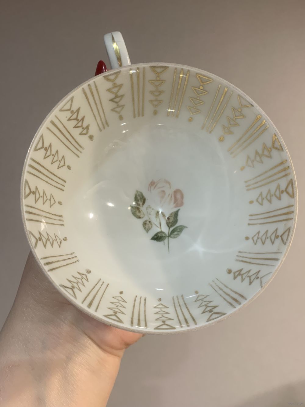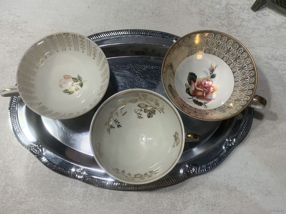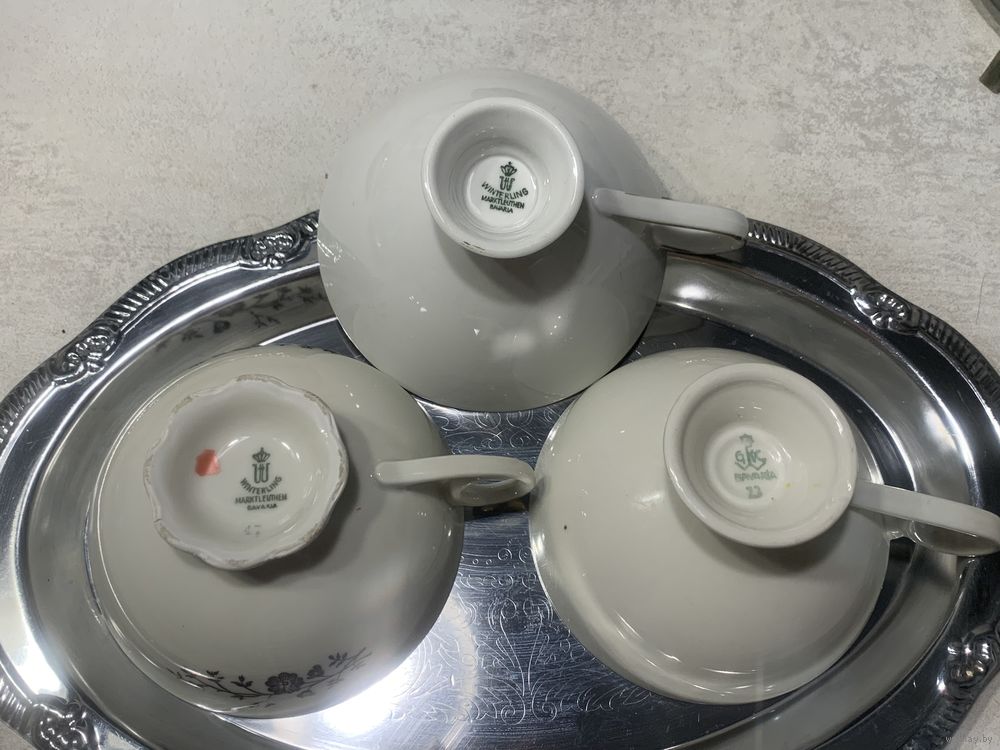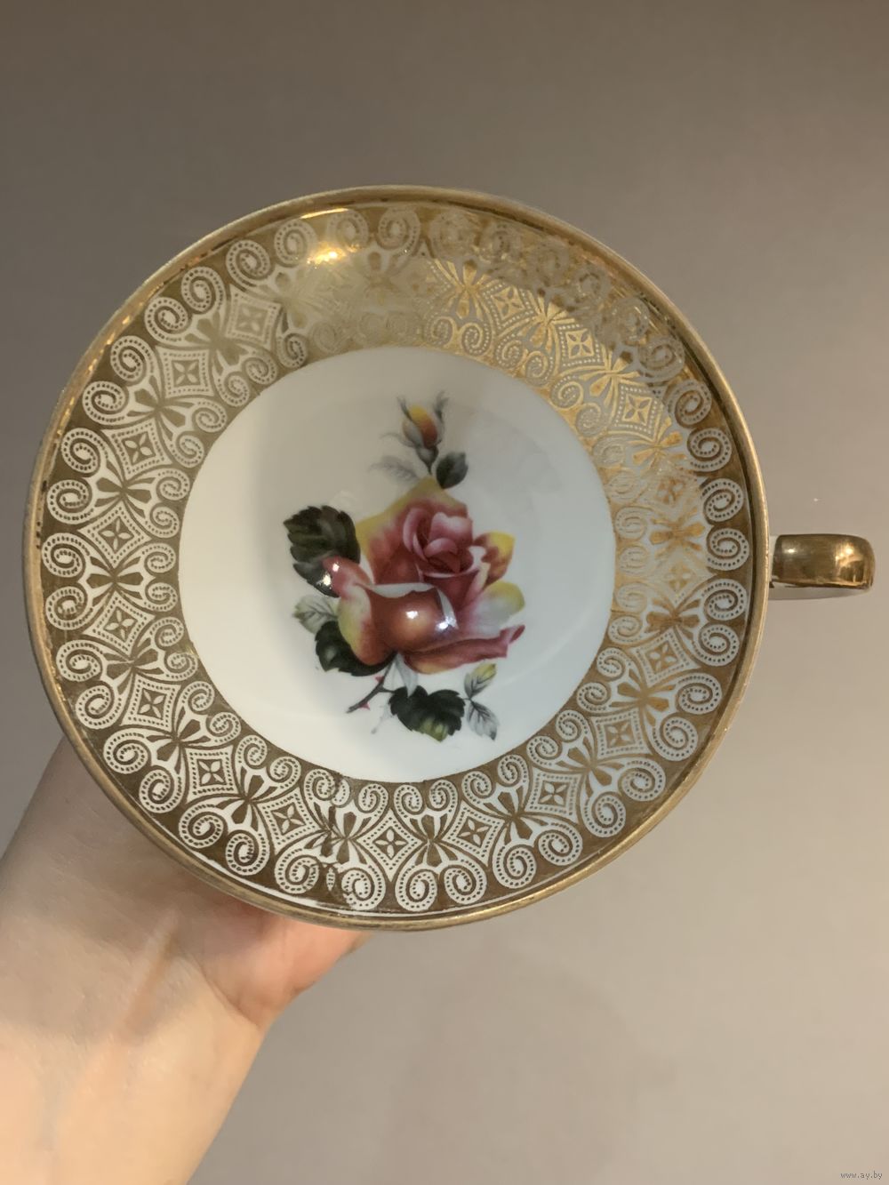 2 чашки в идеальном состоянии - цена 25 руб., на одной внутри частично стерлась розочка (ручная роспись) - цена 15 руб.