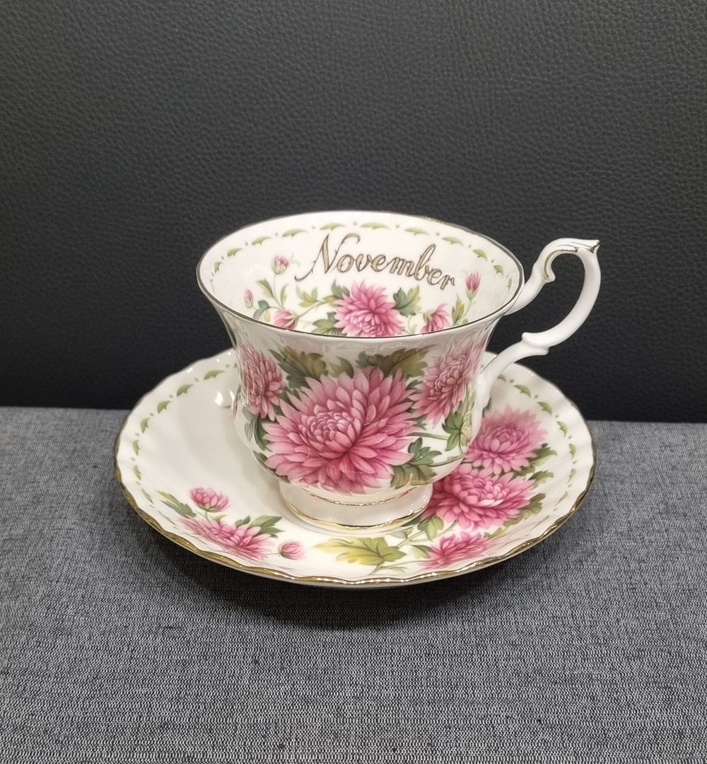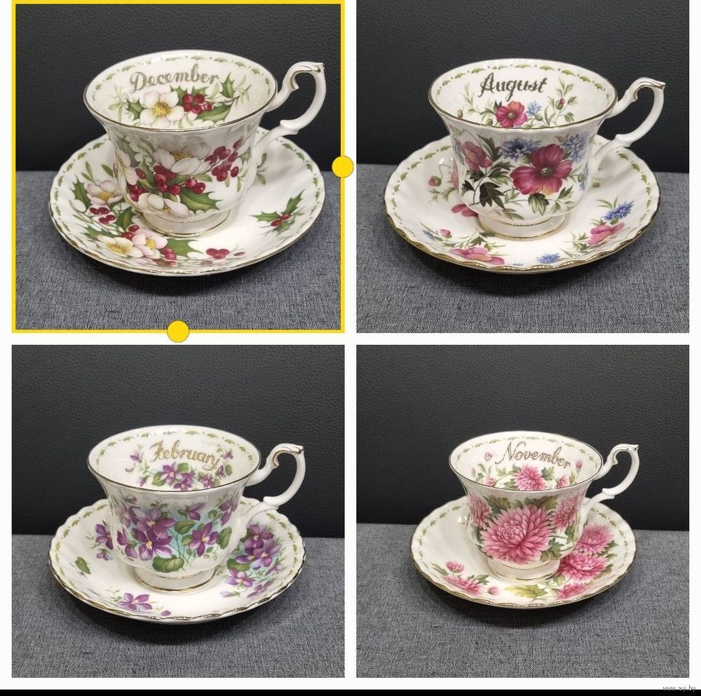 Это коллекционный кофейный фарфоровый комплект Royal Albert из серии "Цветок месяца" (Flower of the Month).