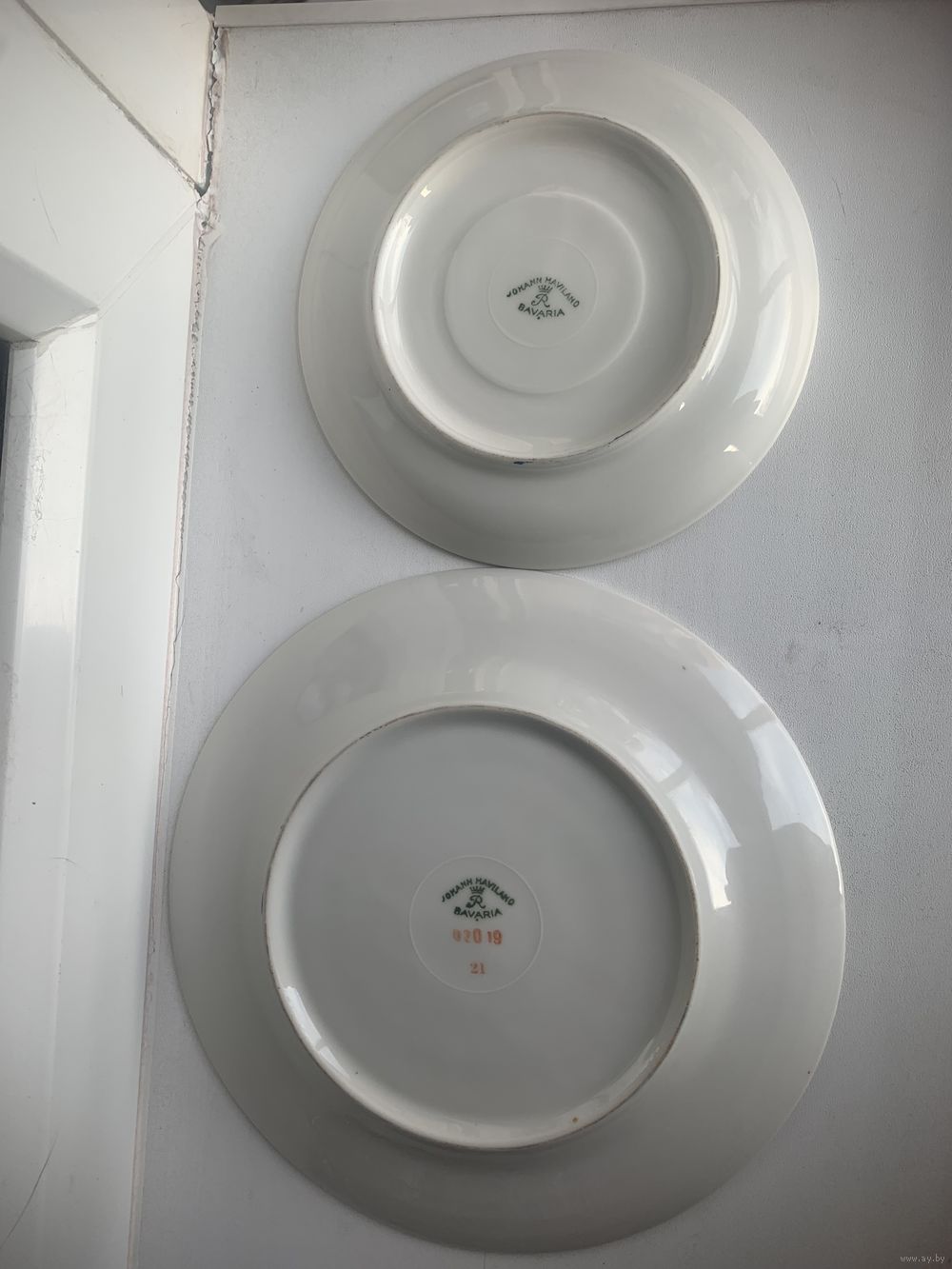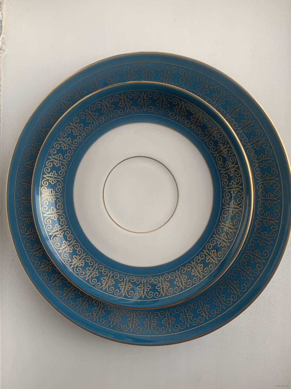 Винтажные фарфоровые тарелки (Бавария), 30-40-е гг., редкое крытьё бирюзового цвета