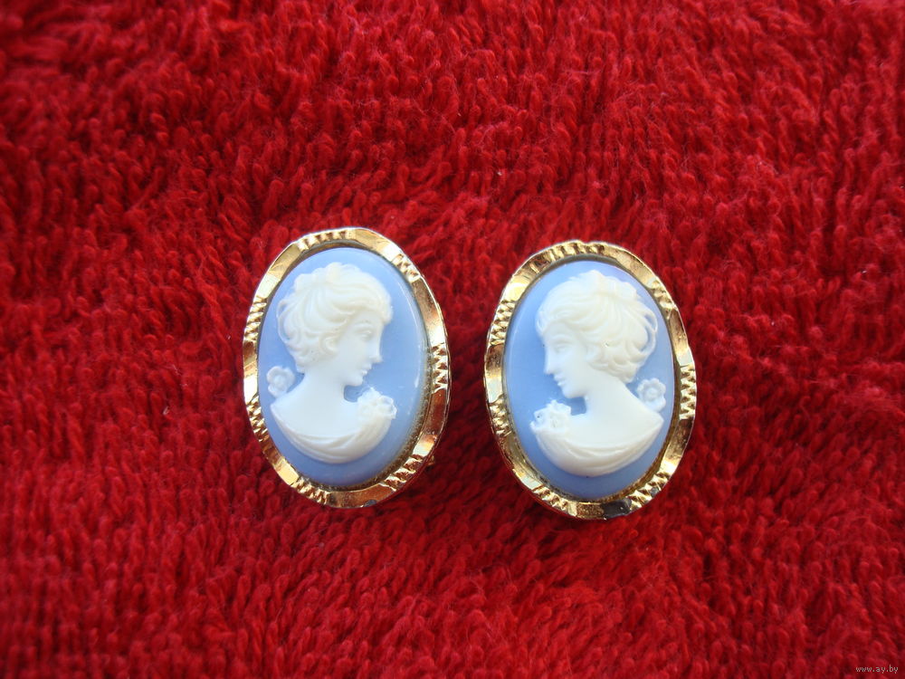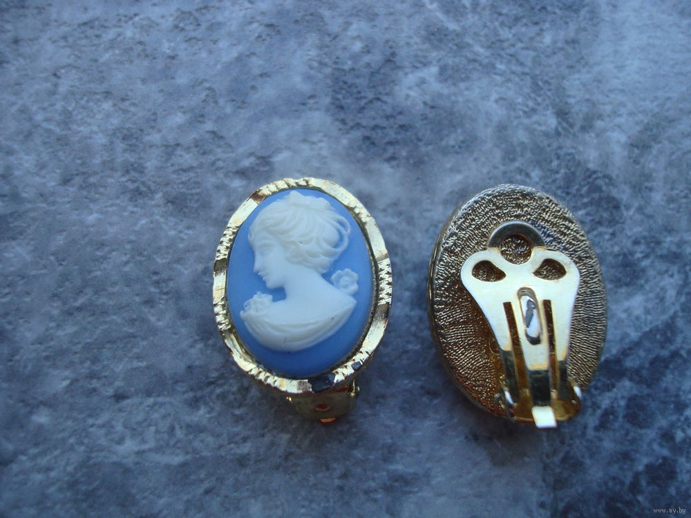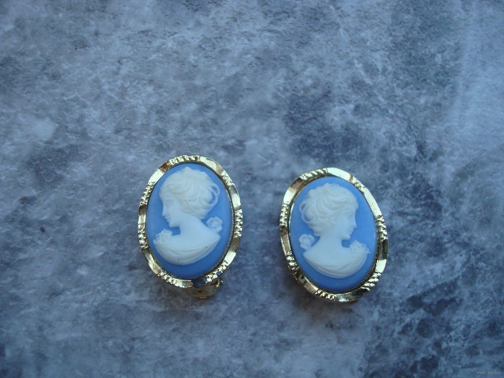 Винтажные клипсы "Камея" в идеальном состоянии. Редкая голубая Камея. Позолота на месте. Есть клеймо.