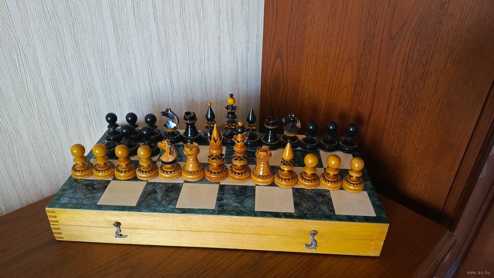 Винтажные коллекционные шахматы курских мастеров резчиков по дереву, 1960-е гг. Доска - перламутр.