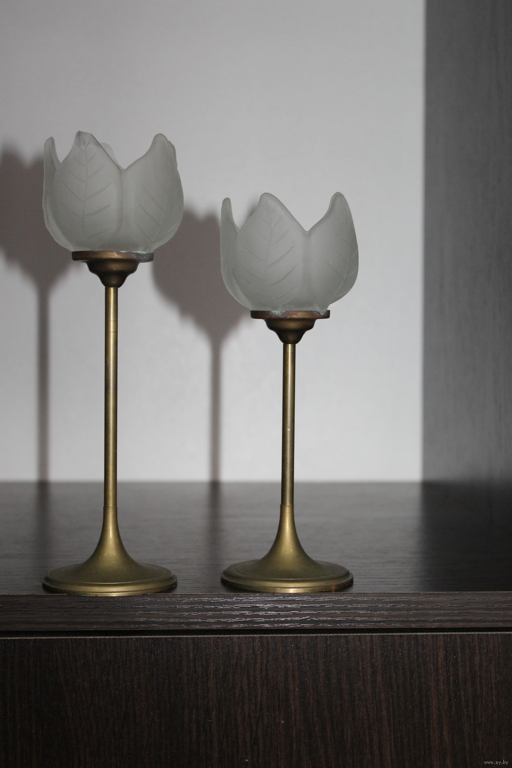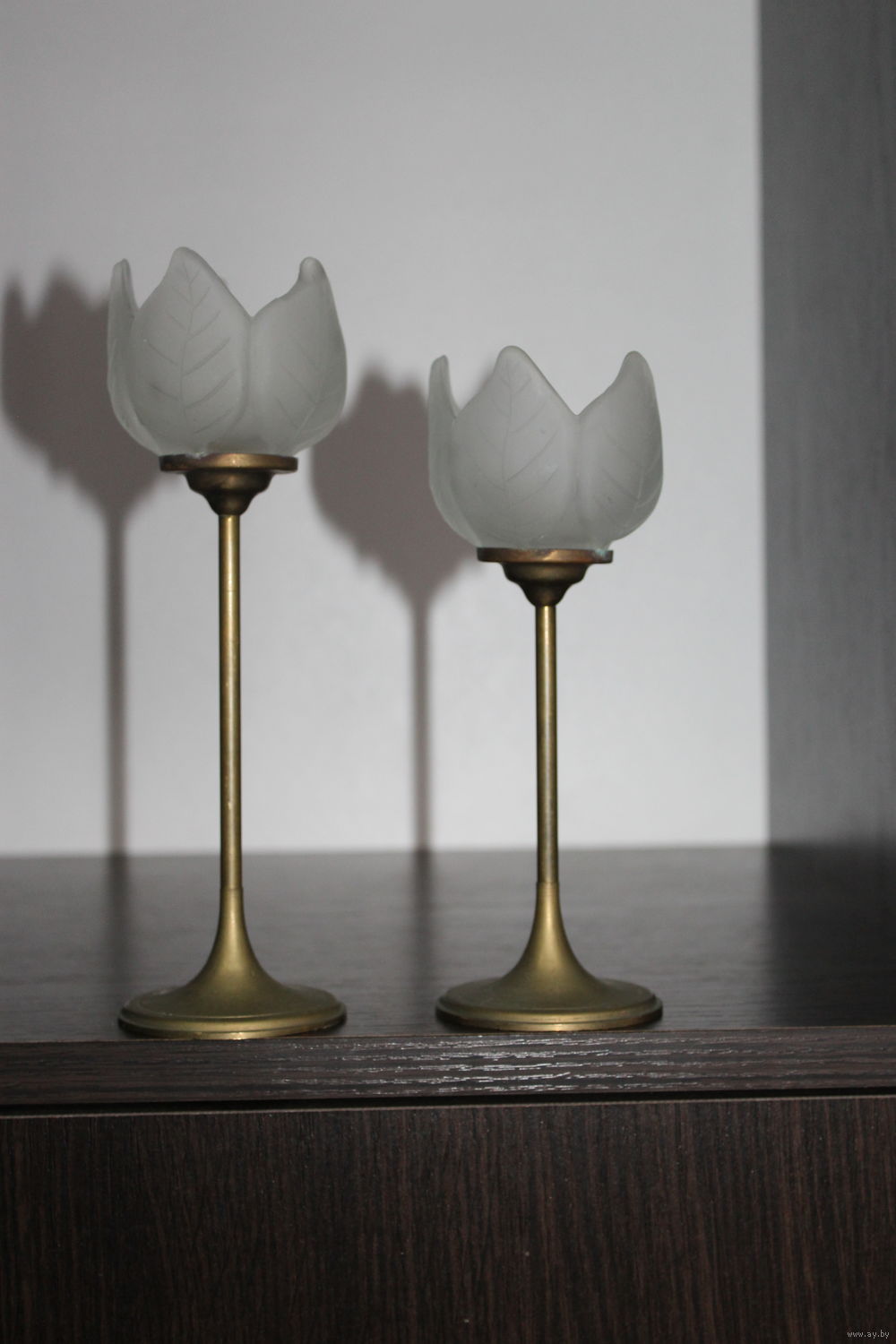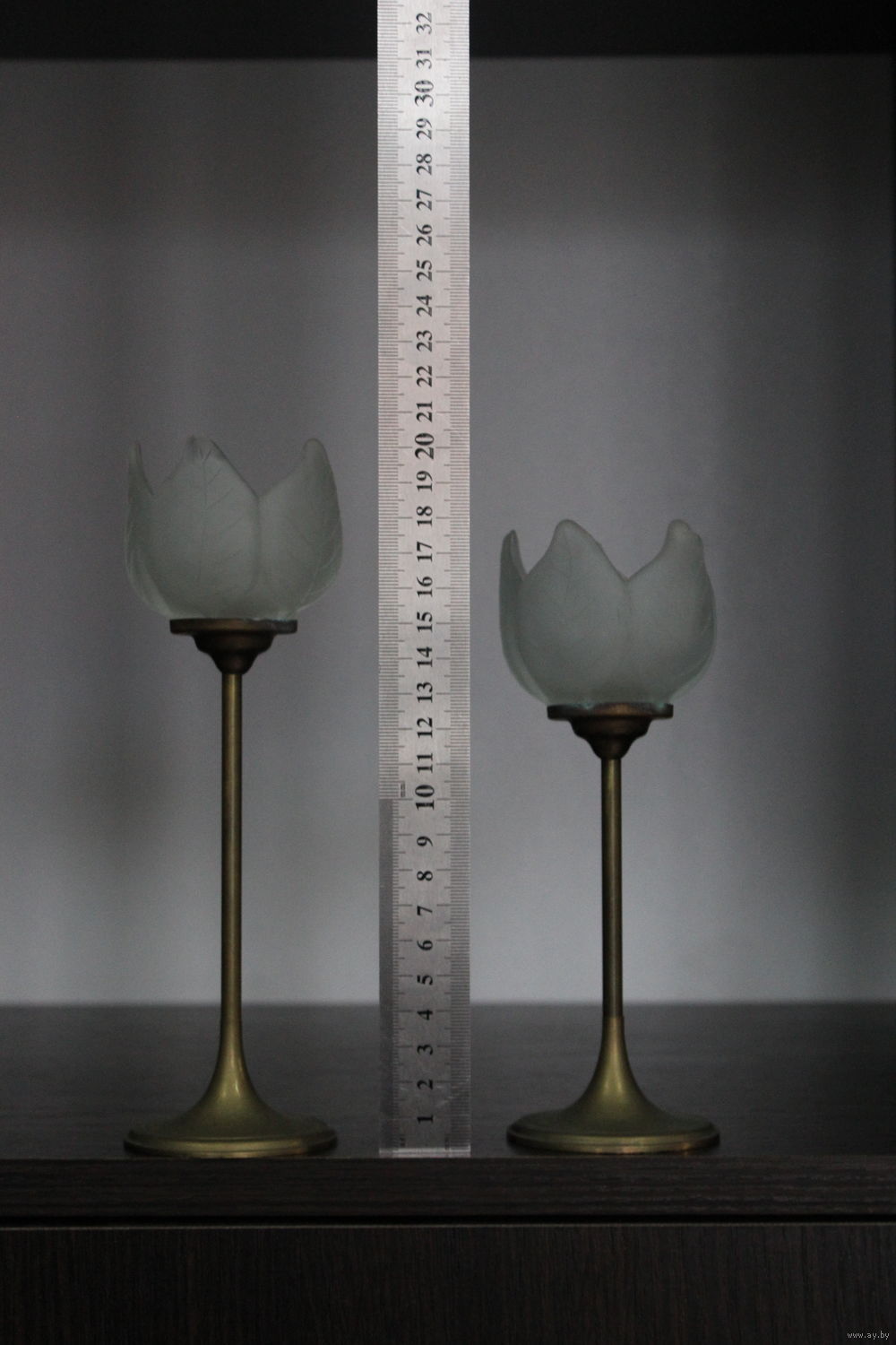 | Присутствуют царапинки, следы окисления, на одном подсвечнике на стекле скольчик, высота 20,5 см., 17,9 см. | |