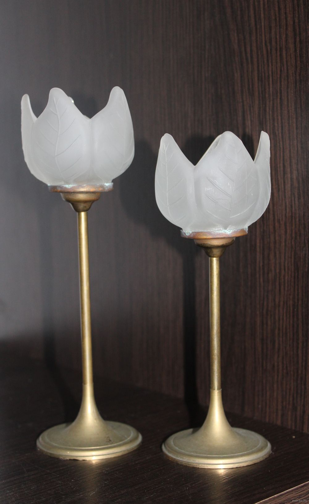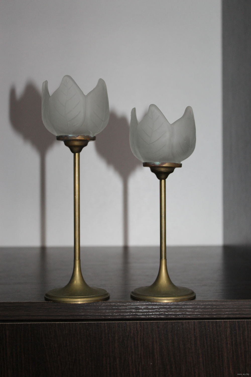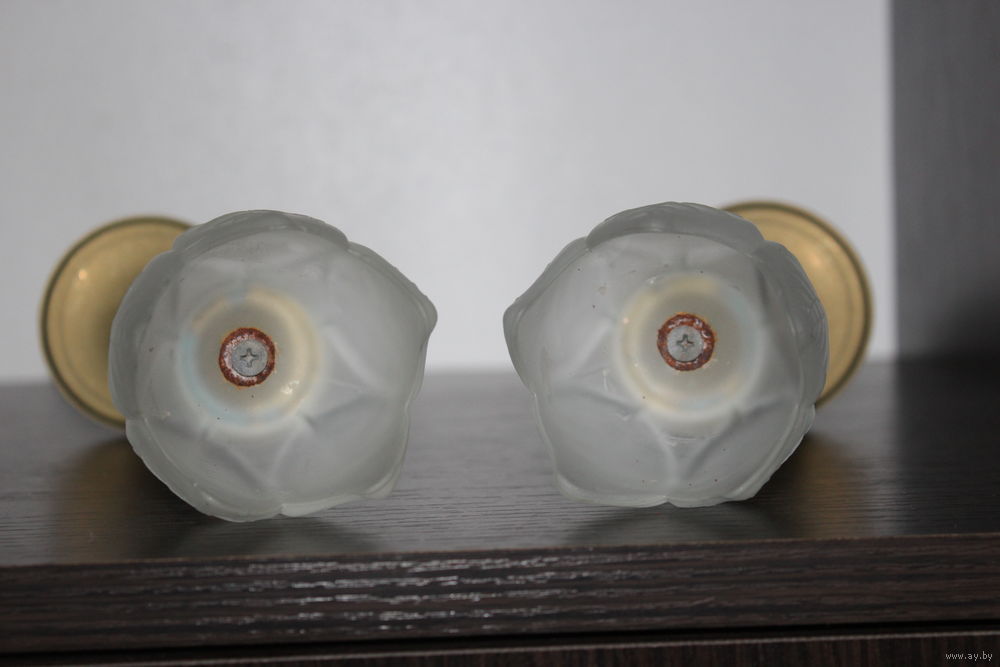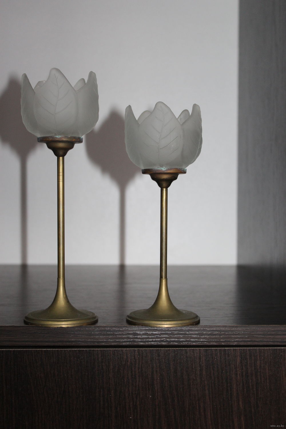 | Присутствуют царапинки, следы окисления, на одном подсвечнике на стекле скольчик, высота 20,5 см., 17,9 см. | |