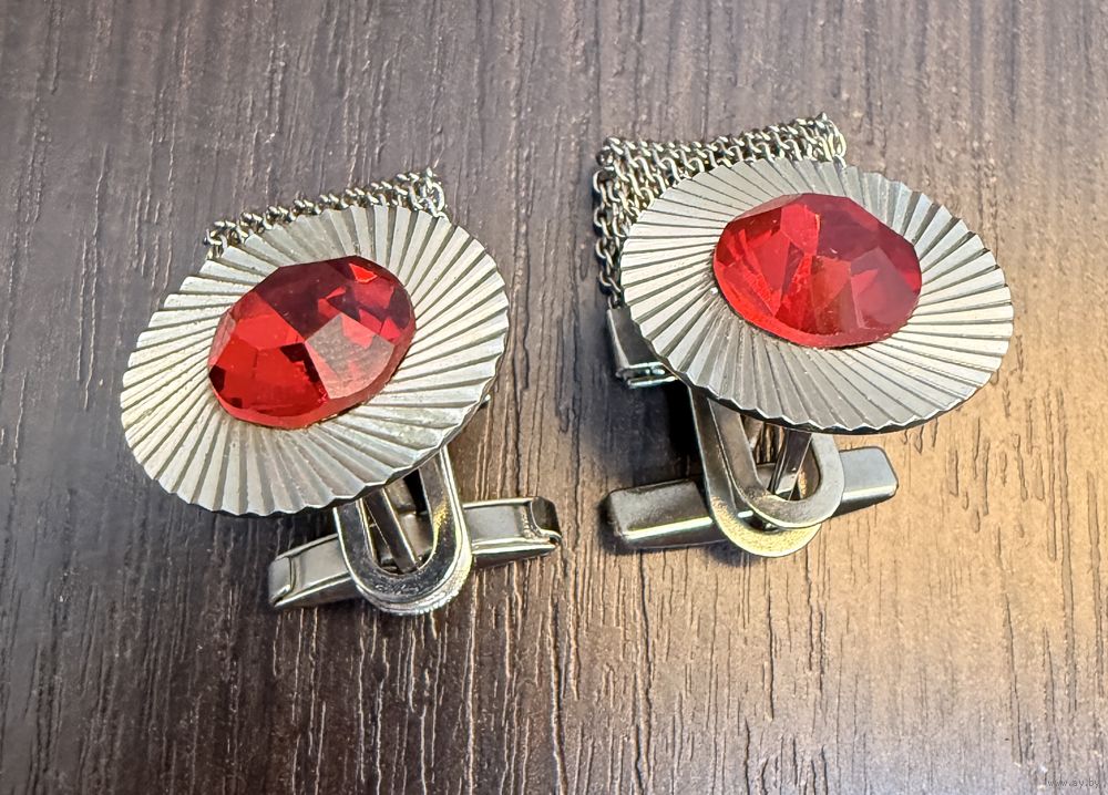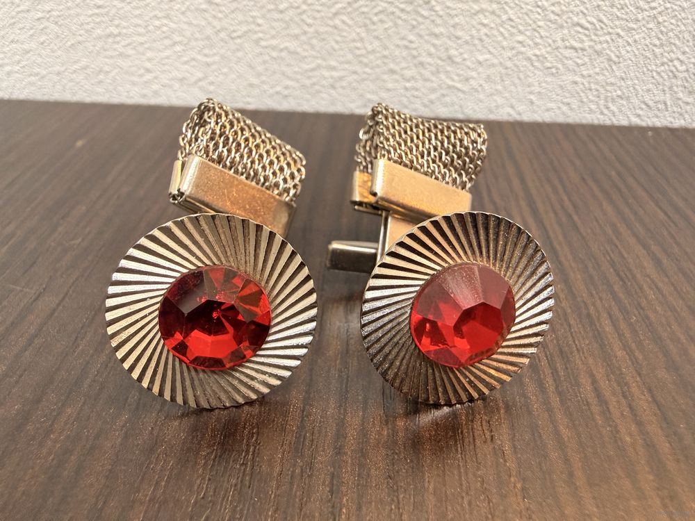 Винтажные запонки с красными кристаллами времен СССР.