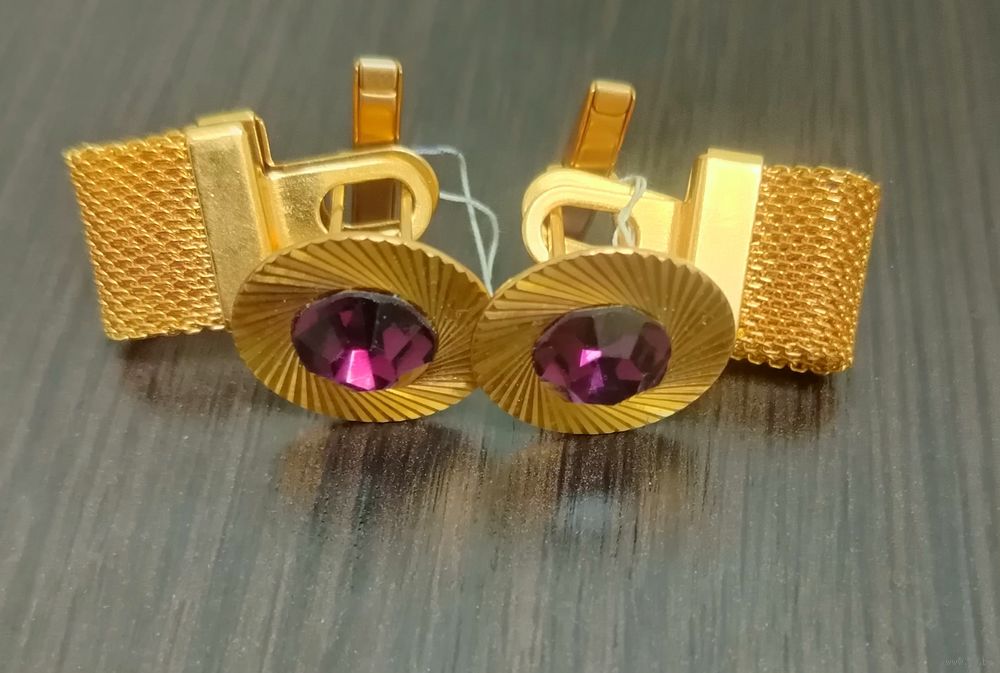 Винтажные запонки с фиолетовыми кристаллами времен СССР . размер размер запонки 2.5 см на 2 см вес двух 22.2 грамма . состояние новое . хорошо подойдет как подарок или презент .