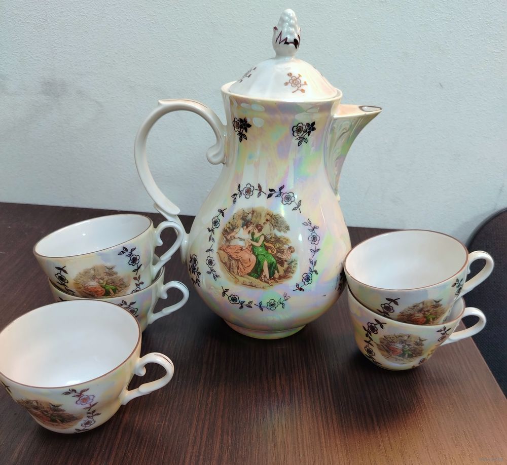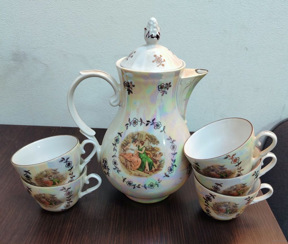 размеры чайника высота 200мм ширина 130 мм , хорошо подойдет в виде небольшого презента или подарка а так же на дачу для приятного чаепития в кругу семьи . хранился в шкафу , все в идеальном состоянии , комплектность как на фото