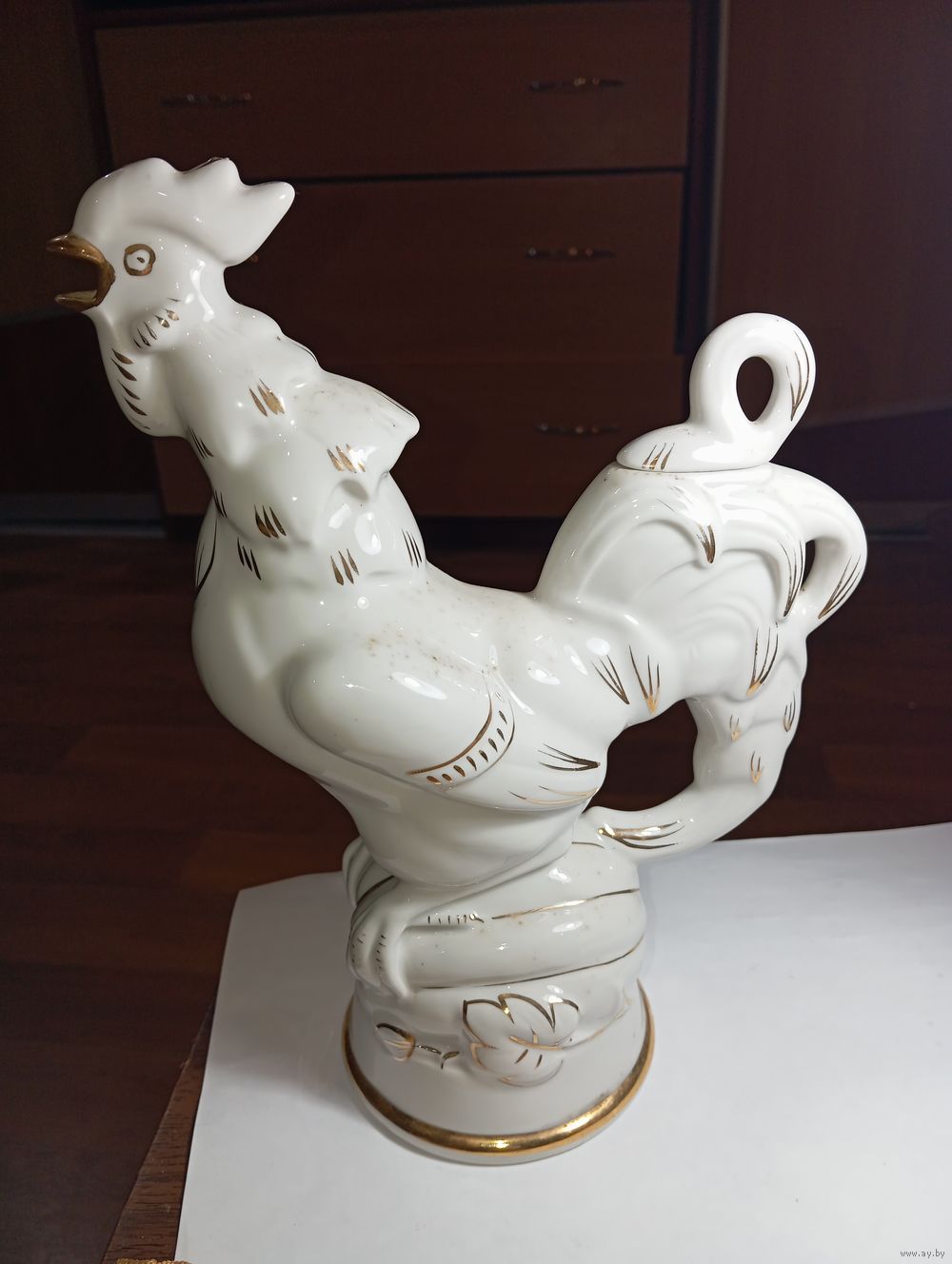 Винтажный фарфоровый графин-штоф Петух , изготовленный на Городницком фарфоровом заводе (ГФЗ) в период 1960–1970-х годов.