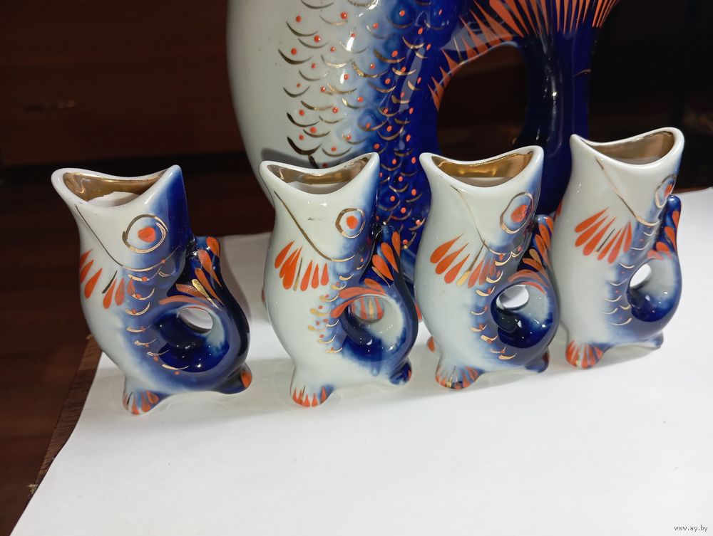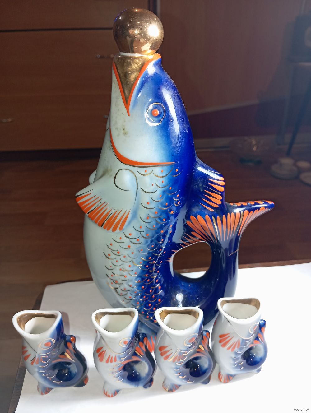 Винтажный фарфоровый графин-штоф Рыбки , изготовленный на Городницком фарфоровом заводе (ГФЗ) в период 1960–1970-х годов.