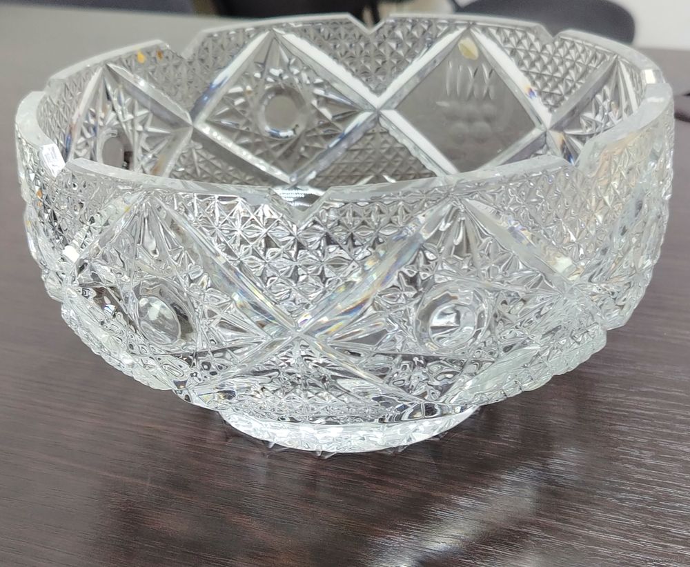 Винтажный хрустальный салатник . размеры высота 10.5 см диаметр 20.5 см вес 2000 грамм . В отличном состоянии как новый .