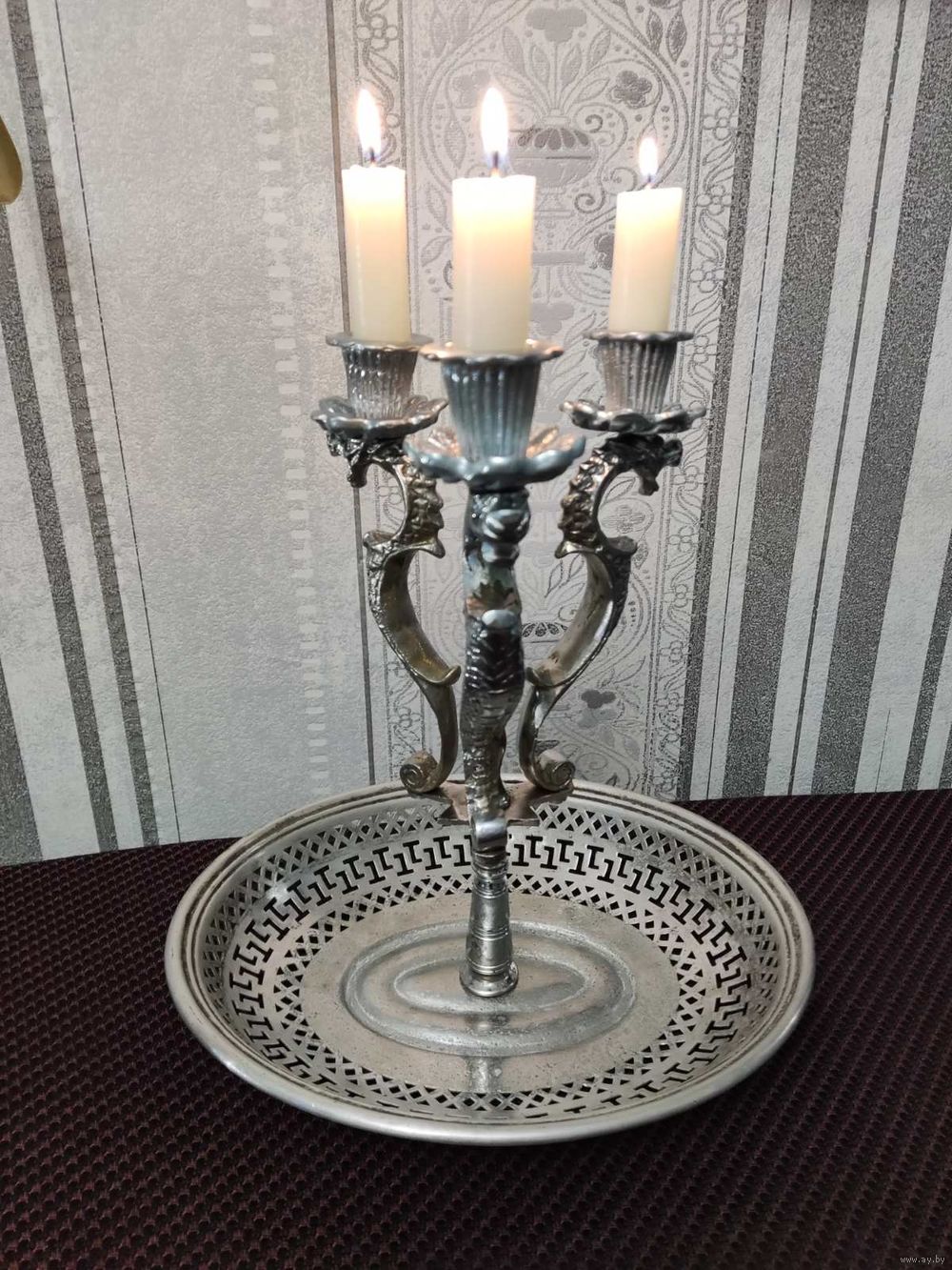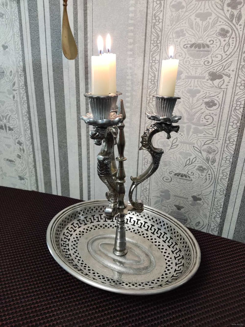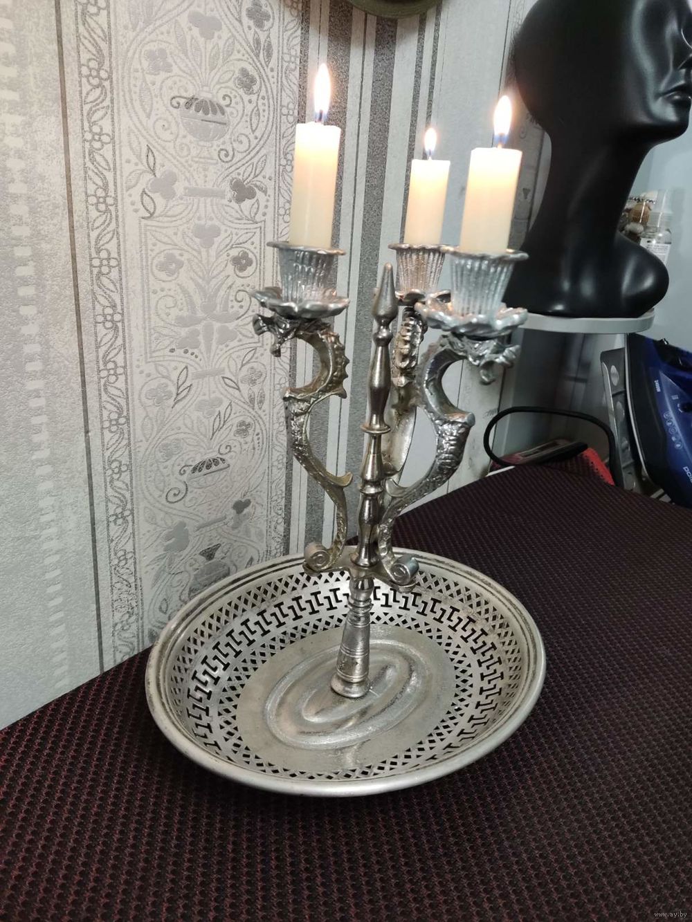 Винтажный канделябр-конфетница "Драконы" на 3 свечи. Восточный стиль. Бронза/латунь, серебрение. 60-е годы. Отличное состояние! Высота общая 28,5 см, конфетница 27 х 22 см. Вес 1,92 кг. ТОРГ!