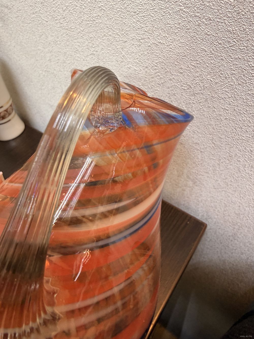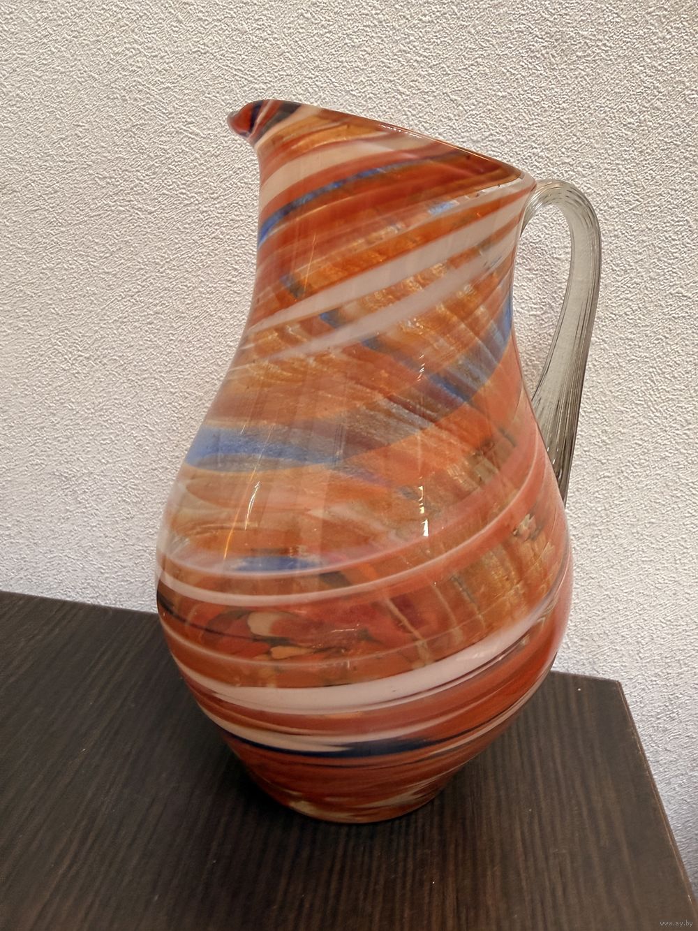 Винтажный кувшин молочник из цветного стекла, гутная техника , СССР