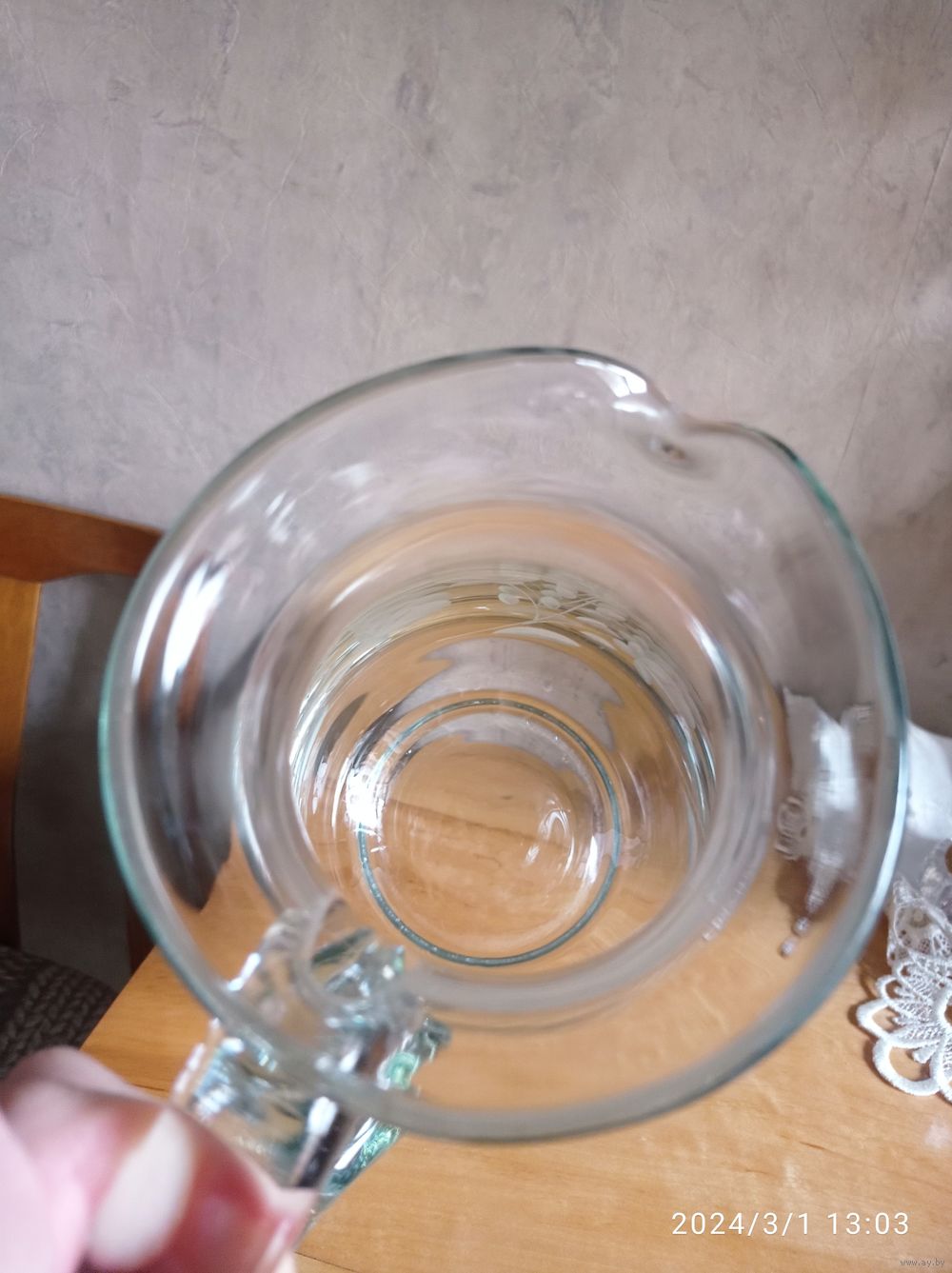 Редкий кувшин из толстого бутылочного стекла, лёгкий бирюзовый оттенок. Вес 1,5 кг. Объем 1,7 литра. Высота 24 см
