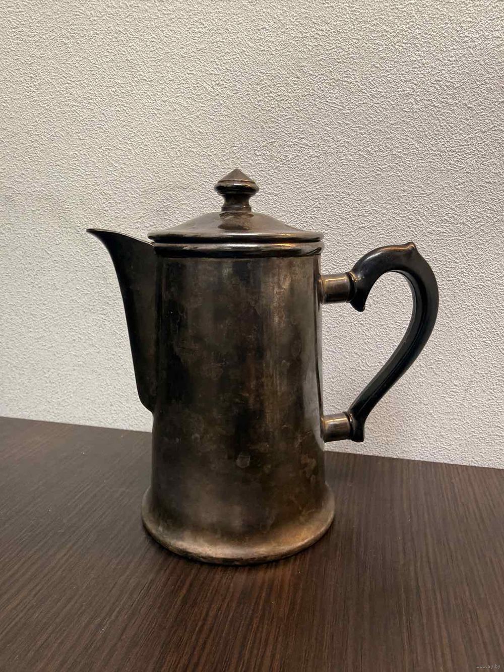 Винтажный мельхиоровый кофейник Кольчугино СССР имеет патину и ручку из бакелита , и не критические следы бытование , состояние хорошее , без вмятин глубоких царапин и деформаций . Размеры высота 15см ширина с носиком и ручкой 15 см диаметр с верху7см по низу 8.5 см . Хорошо подойдет как антикварная вещь интерьер или в виде презента .
