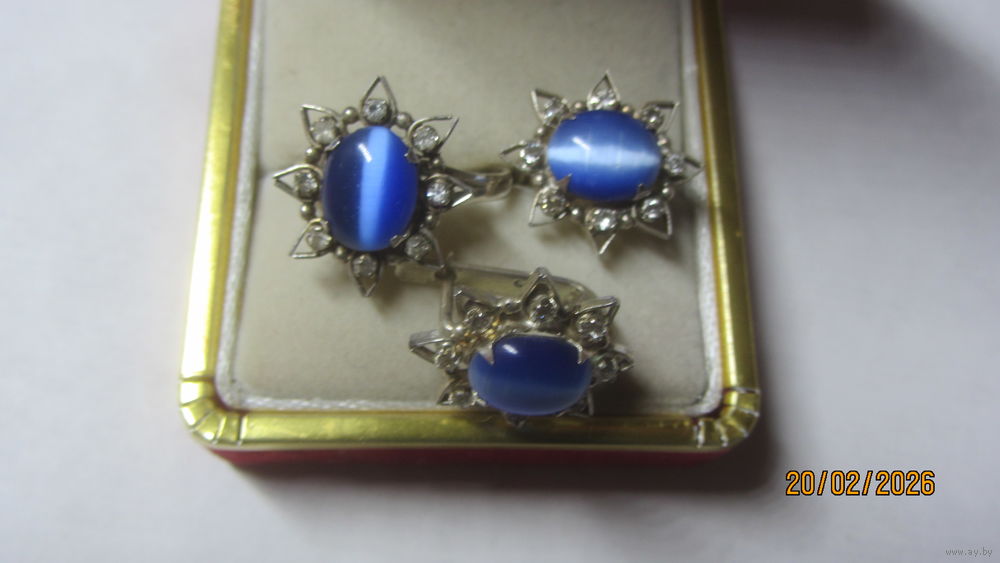 4) набор ,,голубая звезда,, (типа кошачьего или тигрового глаза,с переливом),вес 6,99 г. Цена 110.0 руб. Кольцо 17,5 р-р.